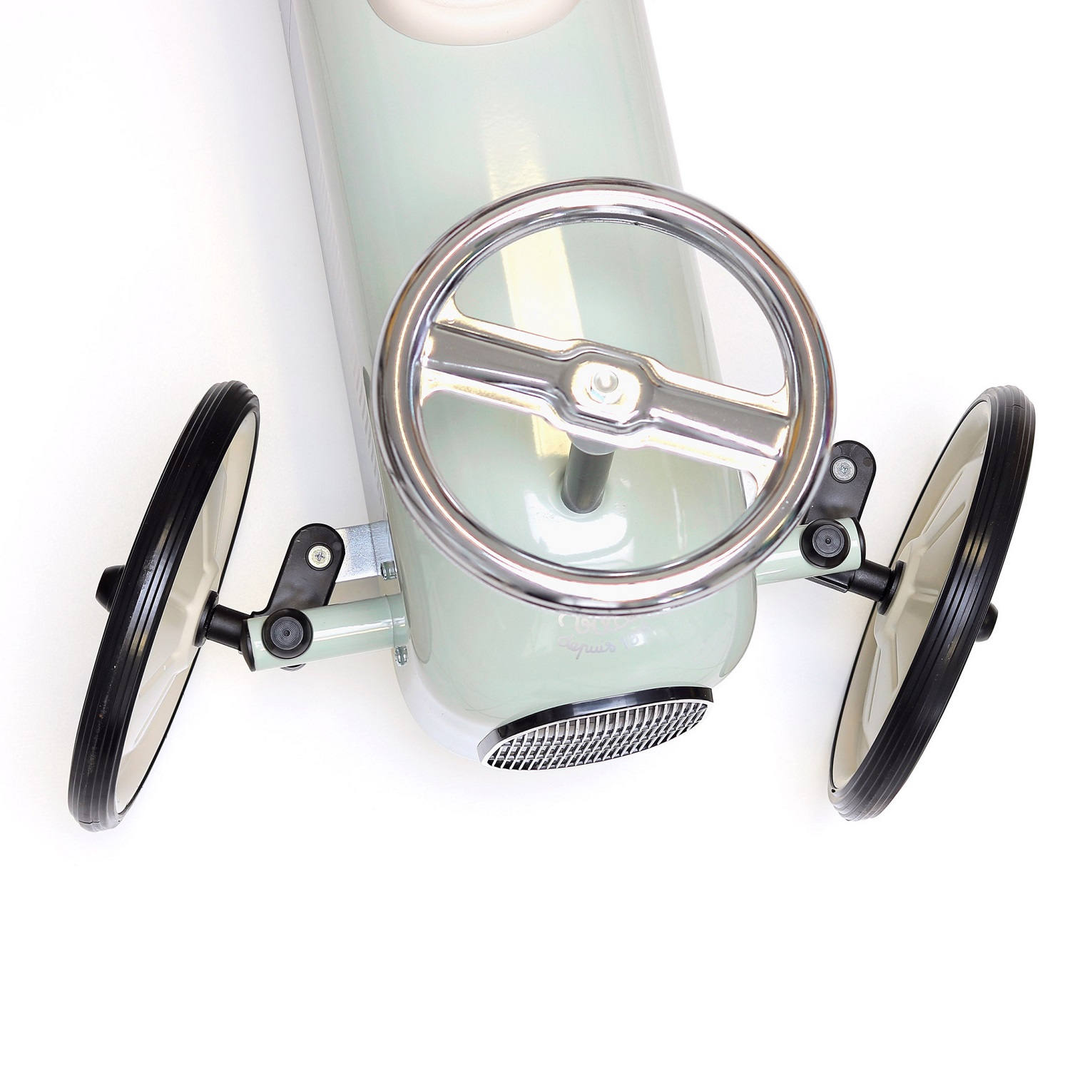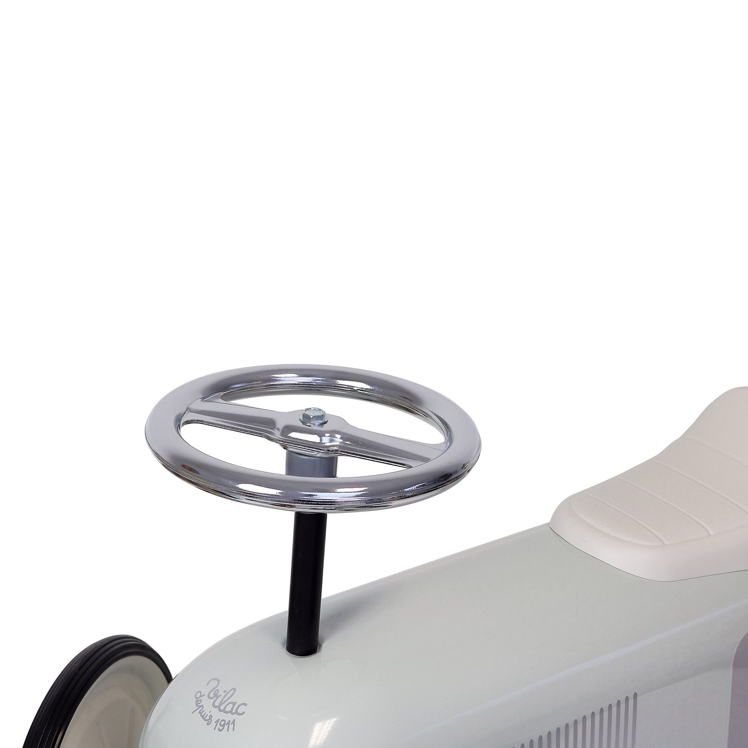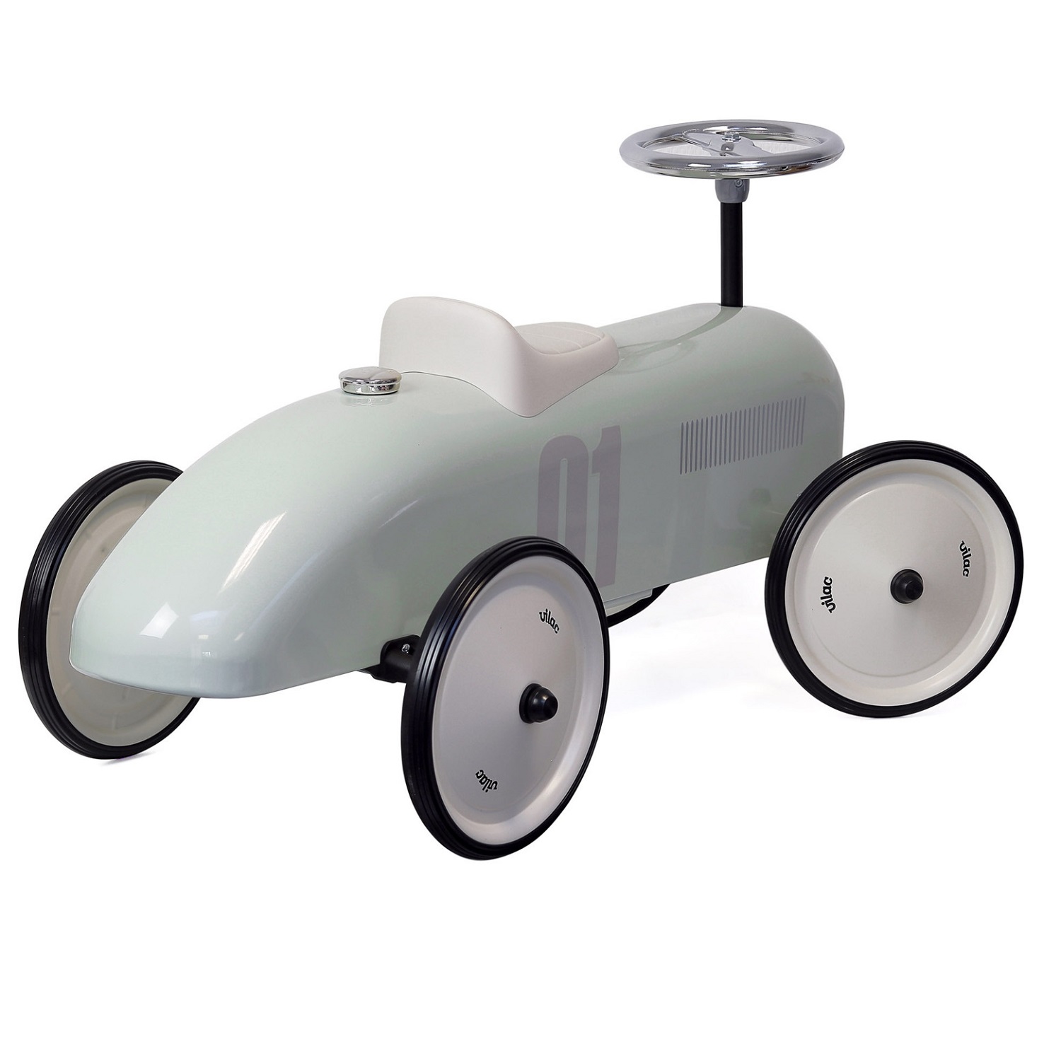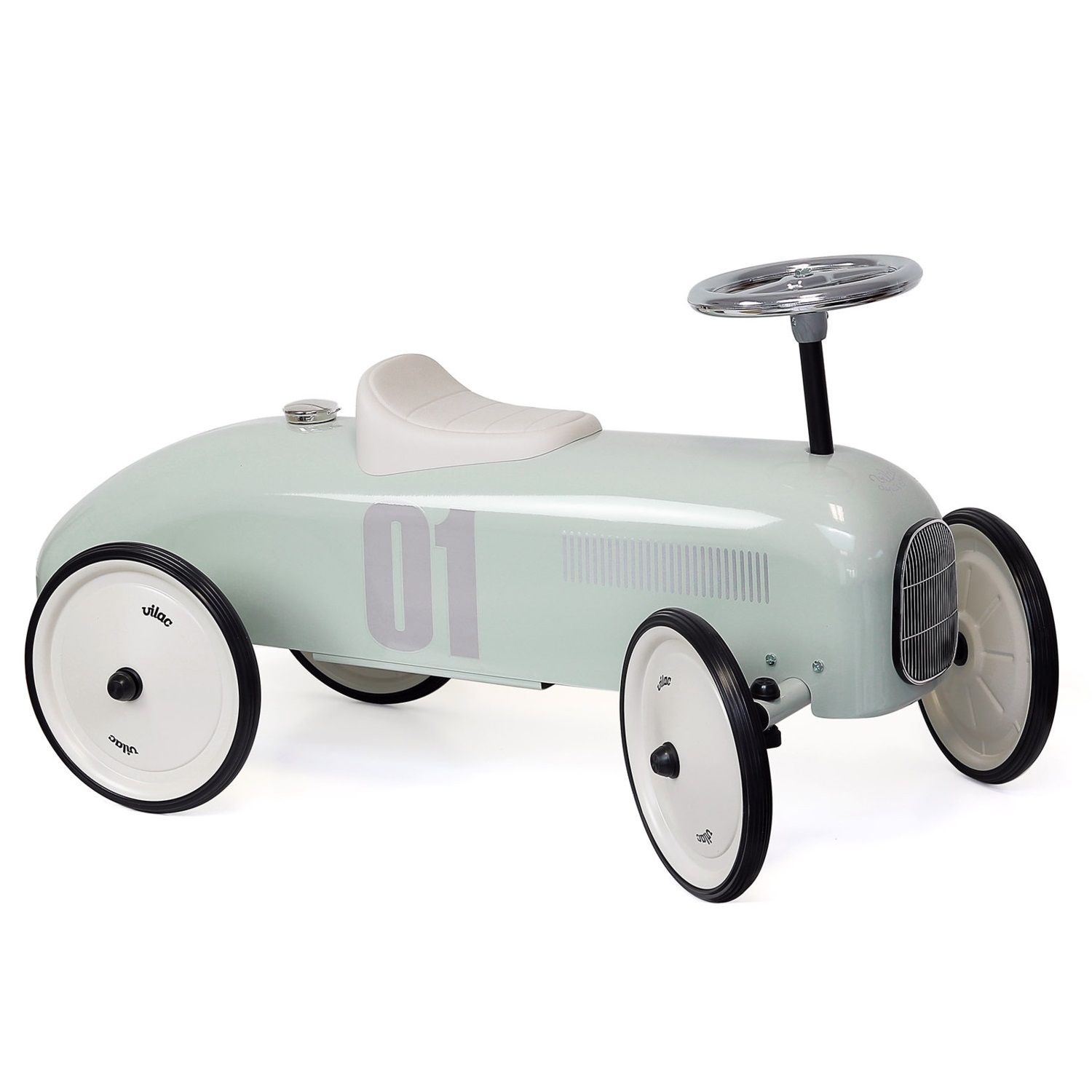 Porteur voiture de course en métal. Couleur sauge. Dimensions : L = 76 cm.