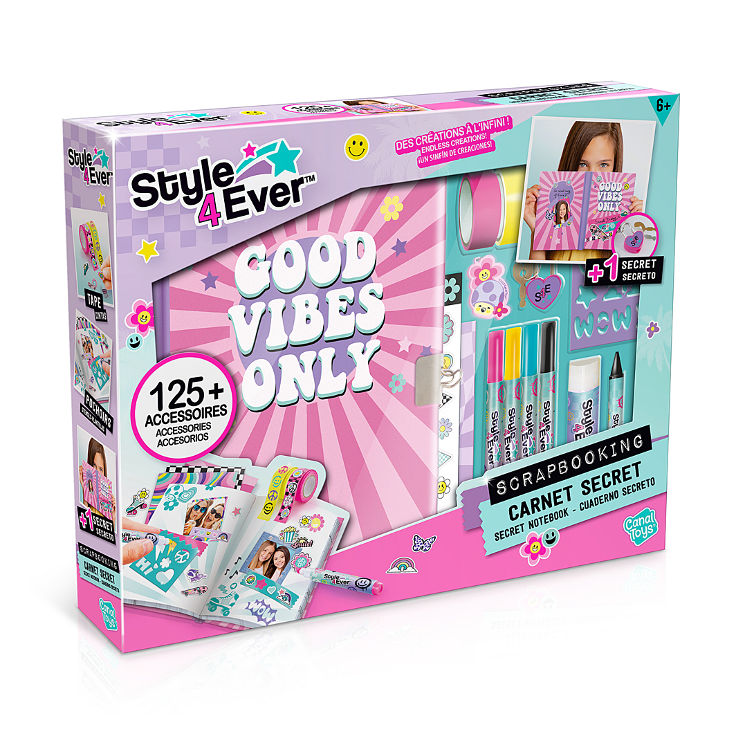 Un carnet secret à personnaliser ! Utilise tous tes accessoires de scrapbooking préférés : stickers, papiers imprimés, tapes et feutres !