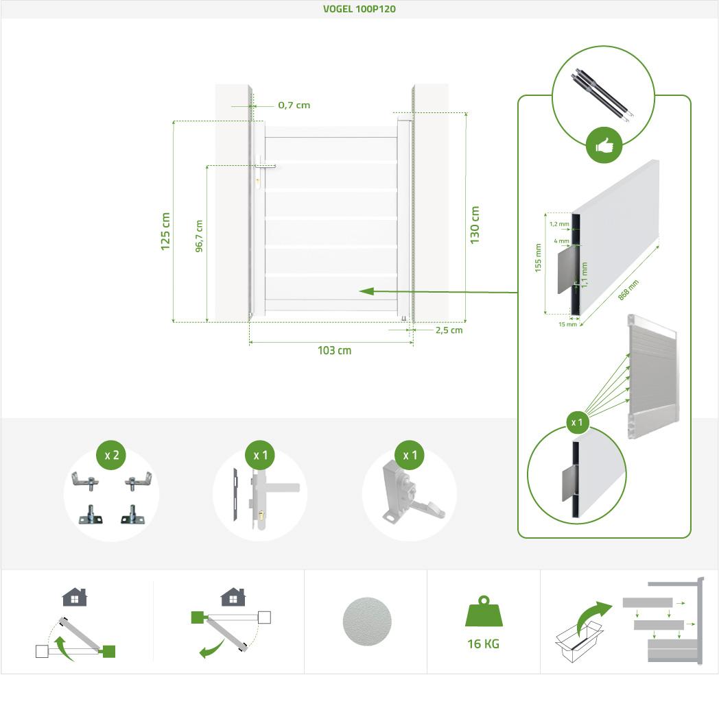 | Libellé | Portillon 1m VOGEL H.120cm aluminium blanc |