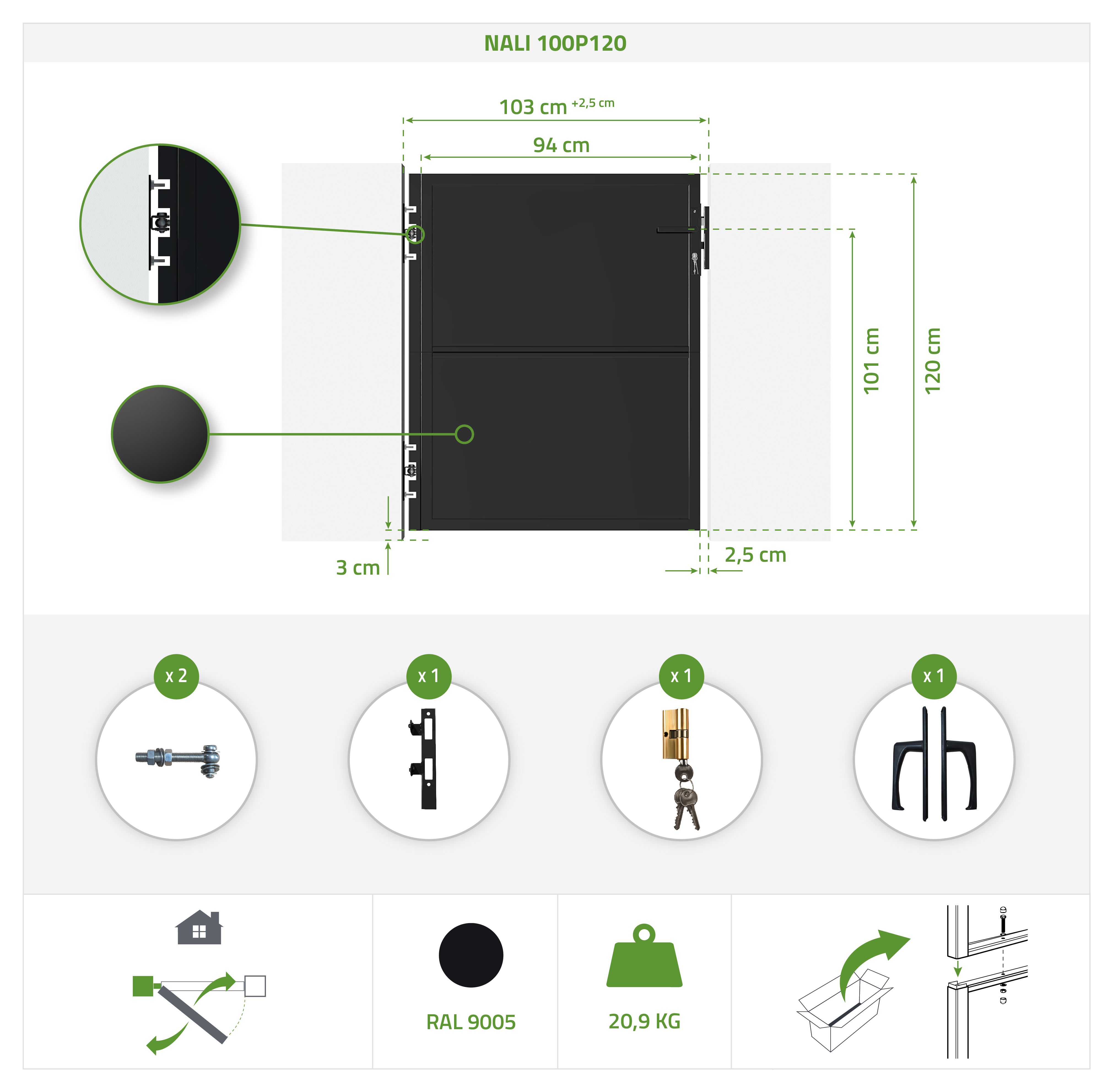 Le modèle NALI ARLBERG est aussi disponible en d’autres dimensions et en version portail battant.