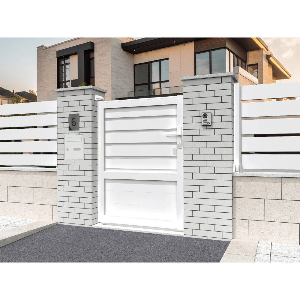 Que votre maison soit de style moderne ou classique, ce portillon s'intègrera harmonieusement à votre environnement. Son design épuré et sa finition soignée en font un élément de décoration à part entière, tout en assurant la sécurité de votre espace extérieur. De plus, l'aluminium thermolaqué offre la possibilité de choisir parmi nos deux coloris (blanc et gris anthracite), ce qui permet de personnaliser le portillon selon vos préférences esthétiques.
