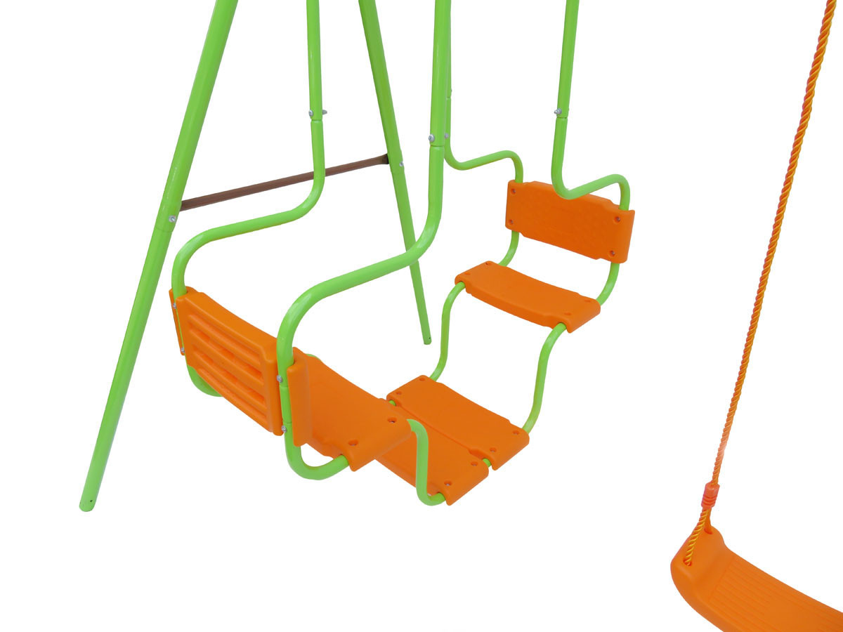 Le portique pour enfant, un véritable espace de jeuxUn espace de jeu ludique Créez-vous de superbes souvenirs avec vos enfants et leurs amis grâce à ce portique ! Vos enfants pourront profiter de votre jardin en leur réservant un espace ludique et chaleureux dans lequel ils éprouveront un réel plaisir. Une imagination débordanteCet espace de jeu sera alors le lieu où leur imagination prendra forme et dans lequel ils pourront se lancer dans de nombreuses aventures ! C'est pourquoi, chaque agrès vous propose une activité différente afin de varier les jeux et s'adapter aux différents goûts de tous. De plus, ce jeu constitue un bon moyen de faire pratiquer un peu d'activité sportive à vos enfants tout en s'amusant !La sécurité avant toutCe portique a été conçu à partir de matériaux fiables, résistants et propres, dans le respect des normes européennes et françaises, afin d'accompagner vos enfants le plus longtemps possible dans leurs fabuleuses aventures.Portique en acier "Eva" - 3 agrès - 1 nacelle - 1 balançoire - 1 face à face - 306 x 156 x 196 cm - Coloris : vert, chocolat et orange .Matériaux: Acier - PE - PP