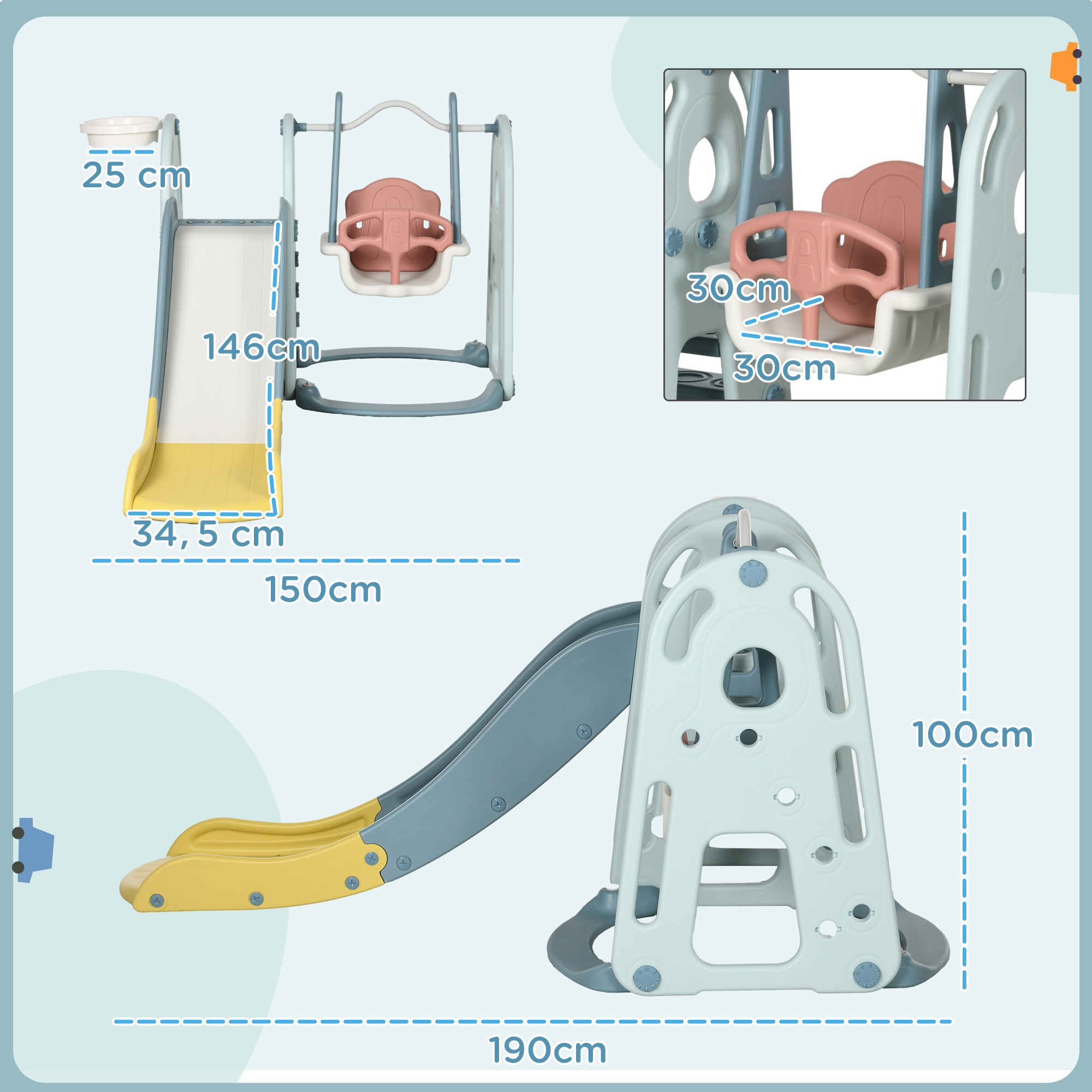- Design 3 en 1 avec un toboggan, une balançoire et un panier de basket-ball