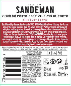| Libellé | Porto Sandeman Fine Ruby - Rouge - 75 cl |