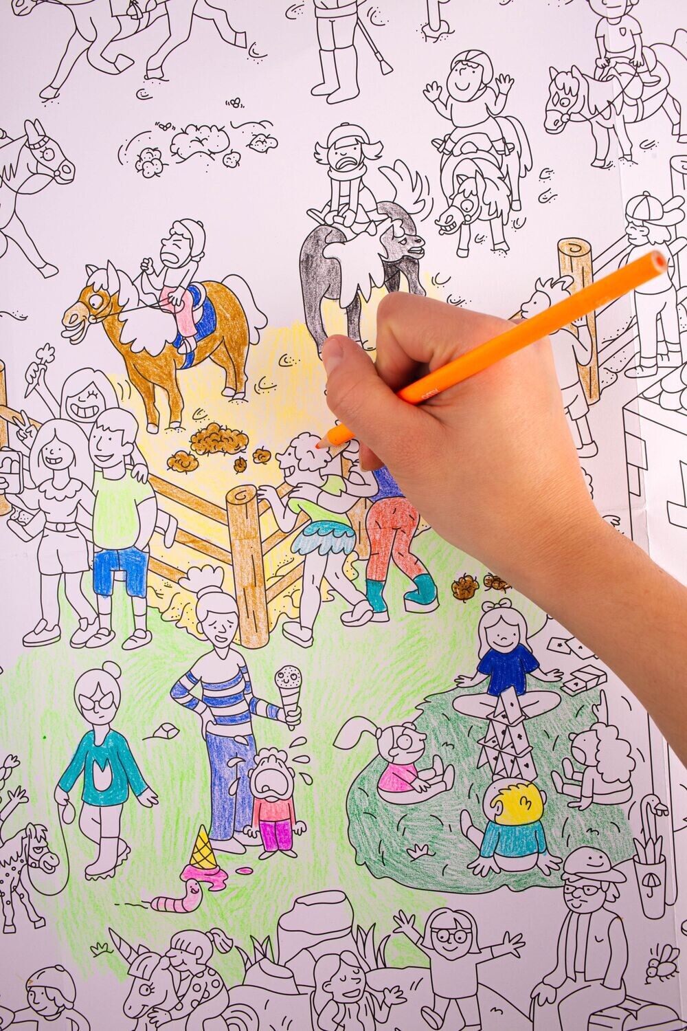 Ce poster géant et ses illustrations pleines d’humour est parfait pour permettre à des enfants à l’imagination débordante de laisser libre cours à leur créativité. Dépliez votre poster à colorier et placez-le au mur ou sur le sol pour réunir toute la famille autour de cette activité conviviale.