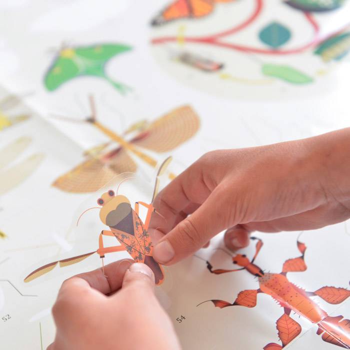 Ce joli poster est une affiche éducative qui permet à l'enfant de découvrir et apprendre les insectes en complétant le poster avec 44 stickers repositionnables. Cette jolie affiche scolaire décorera aussi bien la chambre d'enfant qu'un bureau. Des numéros sont indiqués pour positionner les stickers au bon endroit, si l'enfant se trompe, les stickers peuvent se décoller pour être ensuite placés au bon endroit. Cette activité manuelle est idéale pour les enfants de 6 à 12 ans. Dimensions du poster : 100 x 68 cm Designé en France et fabriqué en Espagne. ...