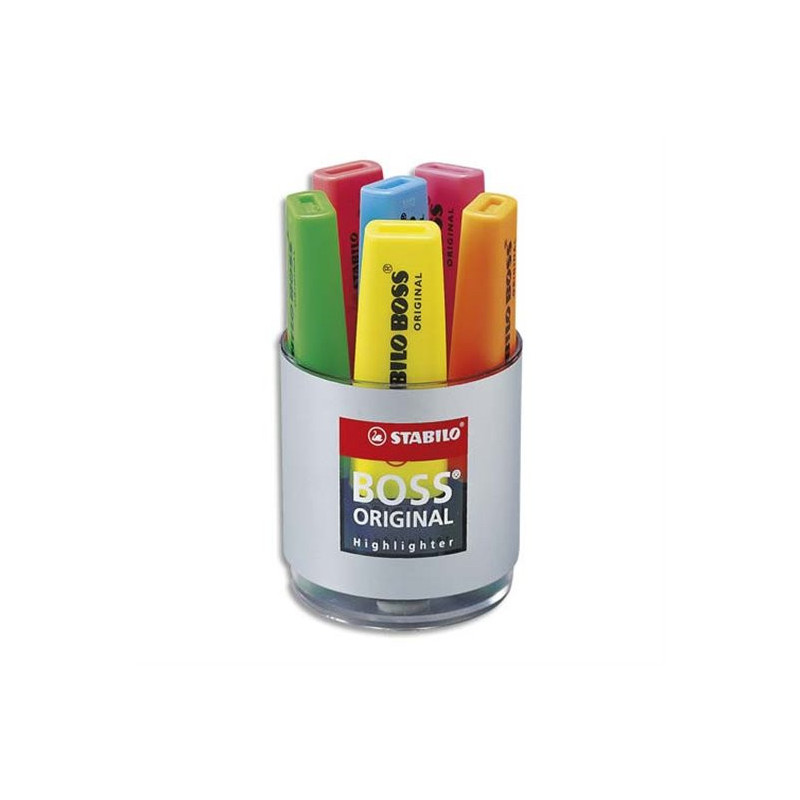 Pot à crayons - 6 surligneurs - STABILO BOSS ORIGINAL - Assortiment fluo