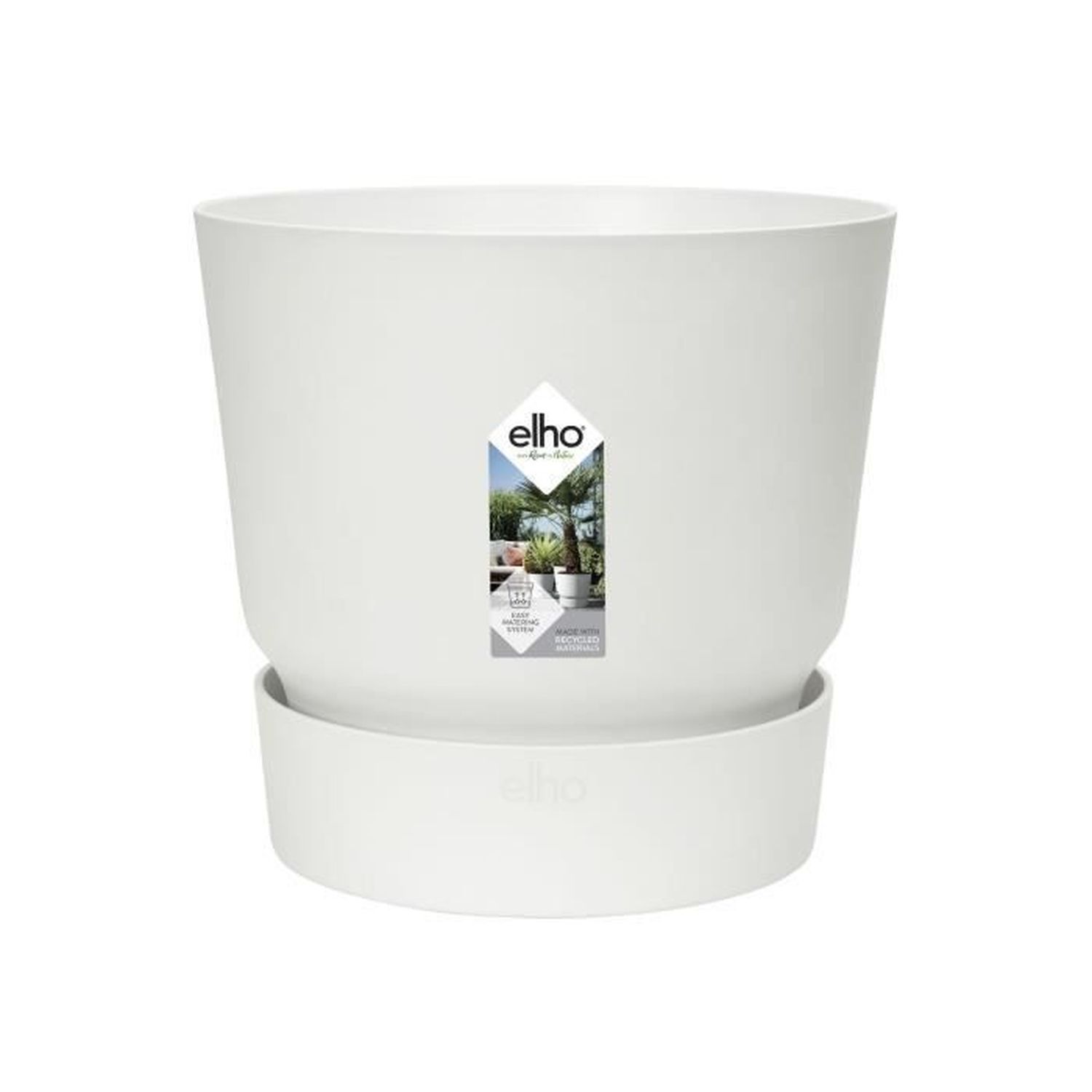ELHO Greenville Rond 47 - Pot de fleurs - Extérieur - Ø 47 x H 44,1 cm - Blanc - Fabriqué en plastique de haute qualité - 100% recyclé - Résistant au gel - Convient pour toutes les saisons - Le pot a un réservoir d'eau intégré - Faciles a nettoyer et robustes.