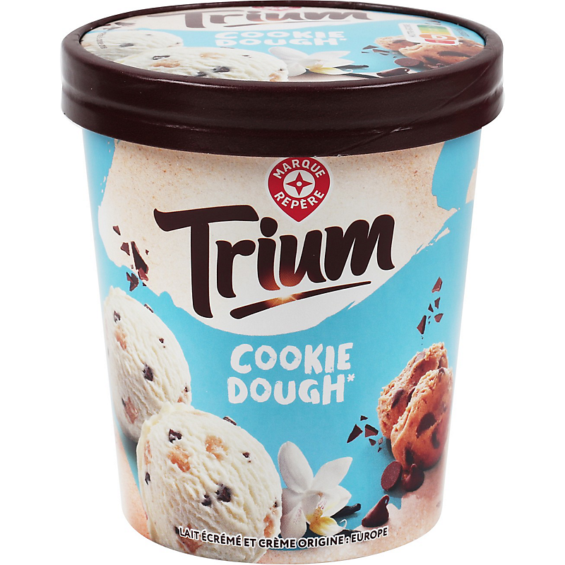 Crème glacée à la vanille avec de la pâte à cookie crue et des morceaux de chocolat TRIUM