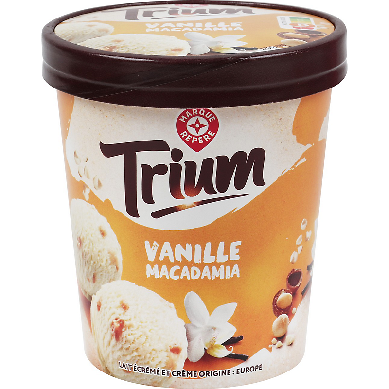 Crème glacée à la vanille avec des morceaux de noix de macadamia enrobés de sucre caramélisé TRIUM