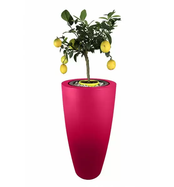Pot de fleurs conique finition grainée 200L avec bac intérieur gris pour fleurs, plantes et arbustes. Fabrication Française, 100% recyclable, pour planter fleurs, arbres et arbustes. Très bel objet de décoration pour intérieur ou terrasse, balcon, jardin, espaces ouverts au public, ce pot présente une capacité soit de 200L. Sa finition grainée et sa dimension rare d'1m21 confortent la perception d'un produit très qualitatif et haut de gamme. En polyéthylène haute densité, traité anti UV, ce pot est à la fois robuste et résistant avec une plage d'utilisation -30° à 60°C. L'entretien est facile avec un jet haute pression, d'années en années, vous le retrouvez comme au 1er jour. Disponible en 14 coloris et une version éclairante. Capacité : 200L Longueur : 60 cm Hauteur : 121 cm Largeur : 60 cm Poids : 12kg Pour usage de pot de fleurs haut Matière : polyéthylène haute densité Très résistant aux chocs, plage d'utilisation : -30°C à +60°C 100% recyclable Traité anti UV Finition grainée Marque : PLAST'UP ROTOMOULAGE Fabrication Française