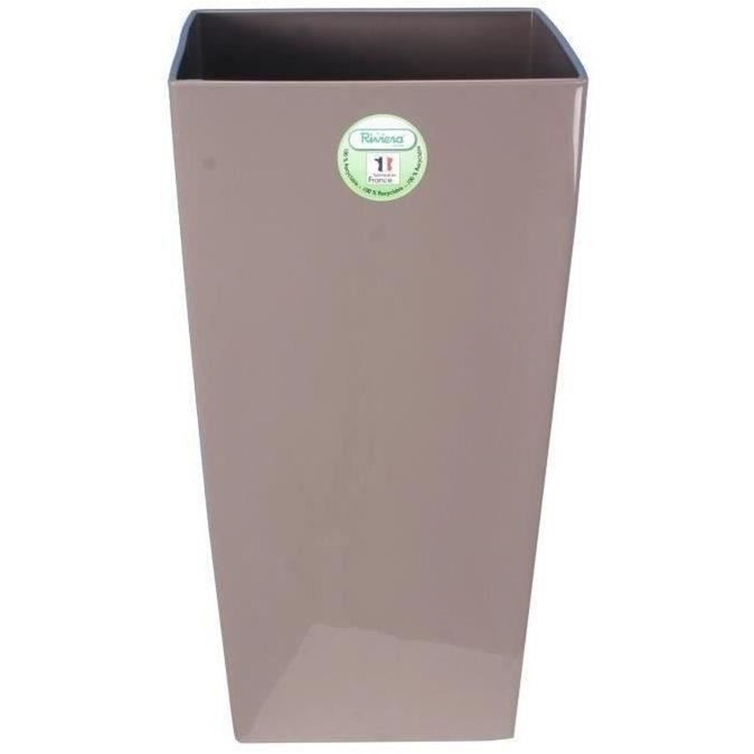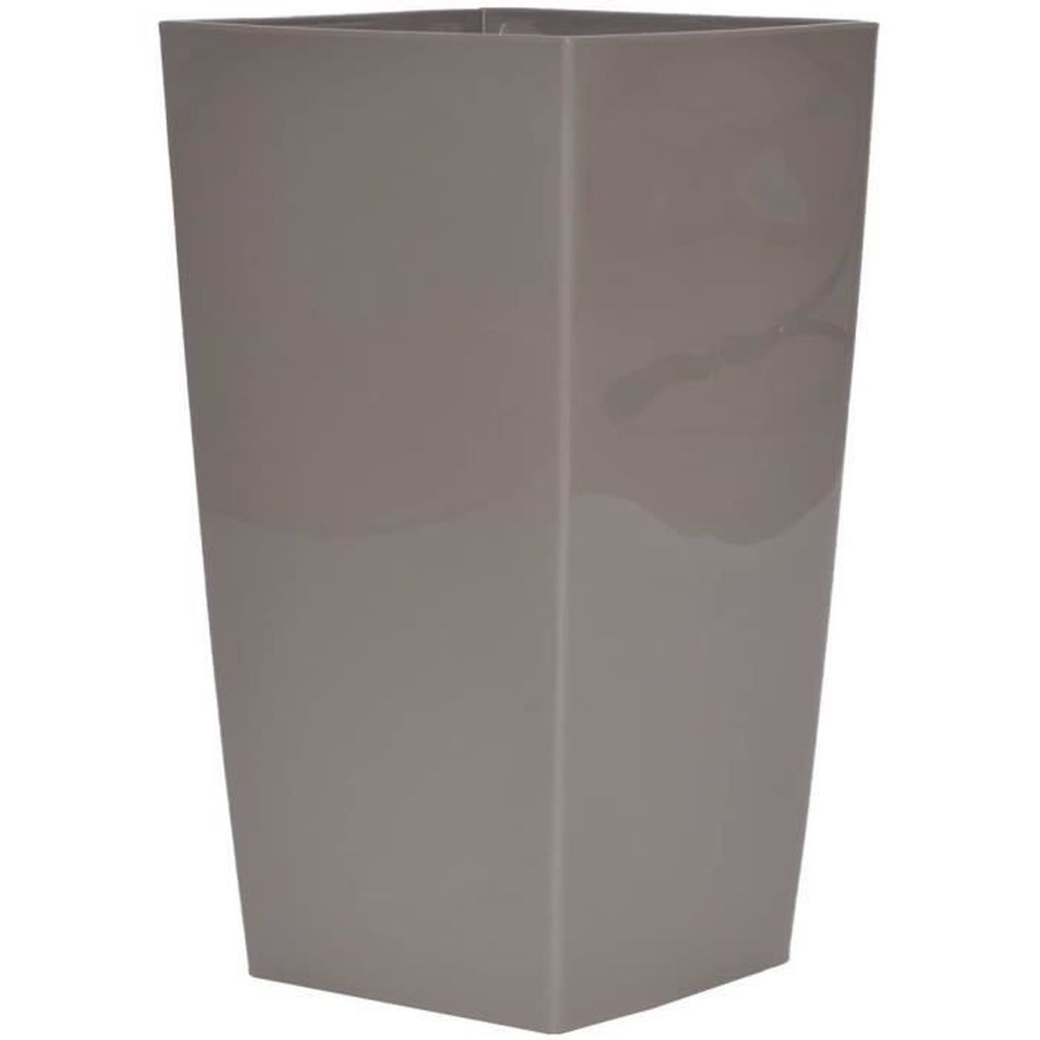 Ce pot de fleurs carré de 29x29 cm et d'une hauteur de 52 cm est idéal pour vos plantes. Sa contenance est de 32,6 L et il est en polypropylene de couleur taupe. Il est percé pour faciliter l'écoulement de l'eau.