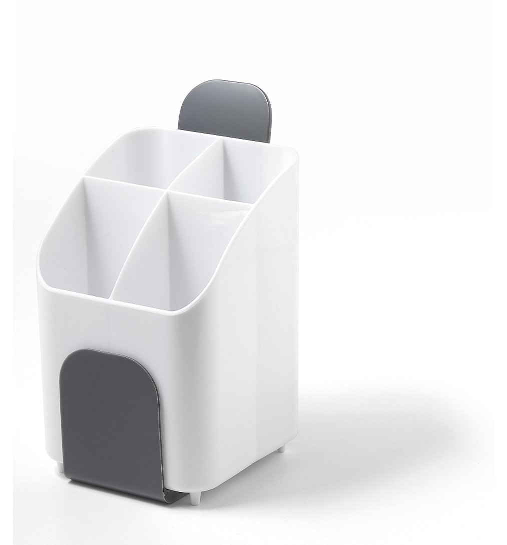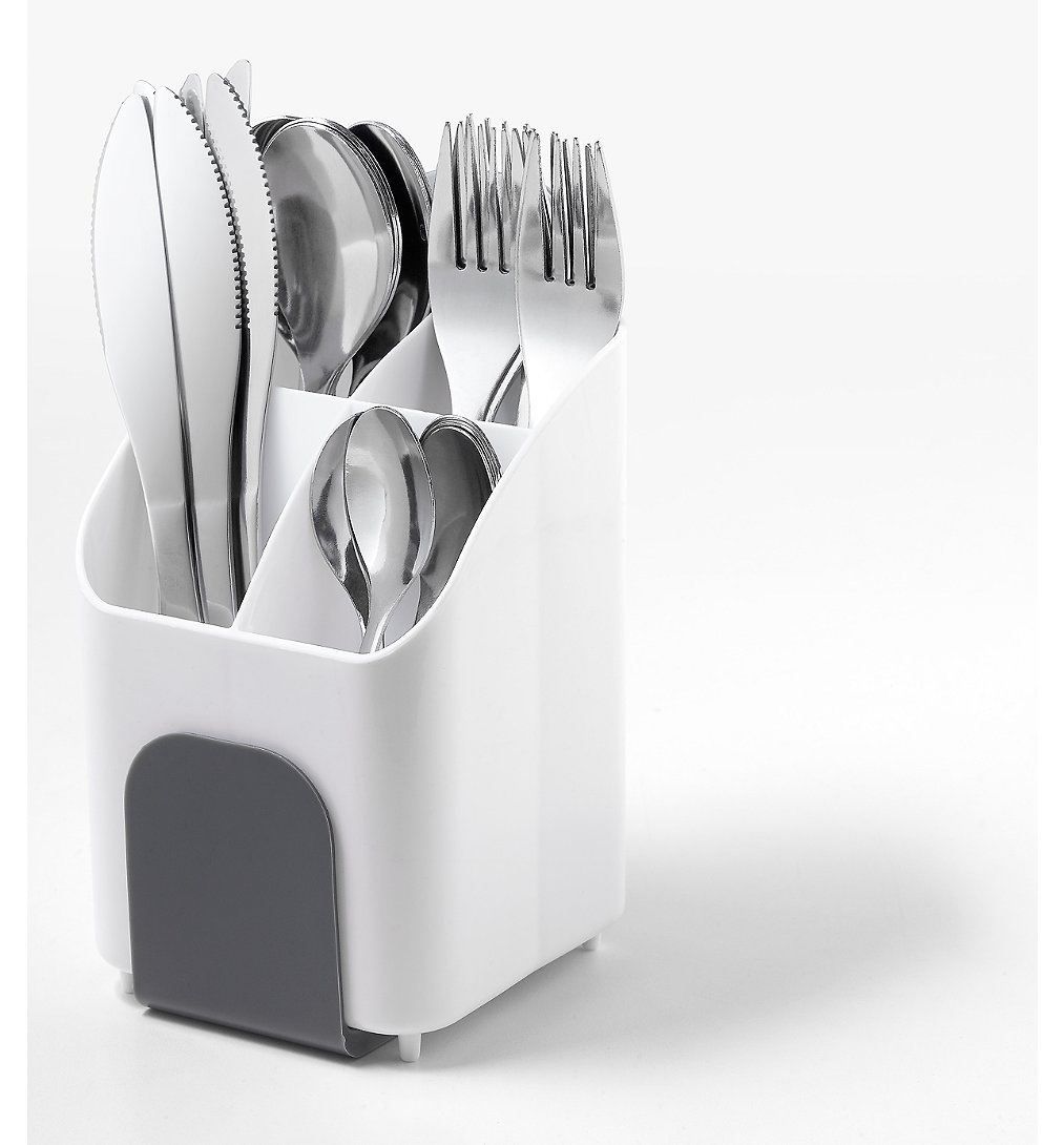 Pot range-couverts 4 compartiments en plastique - passe au lave-vaisselle - gris et blanc