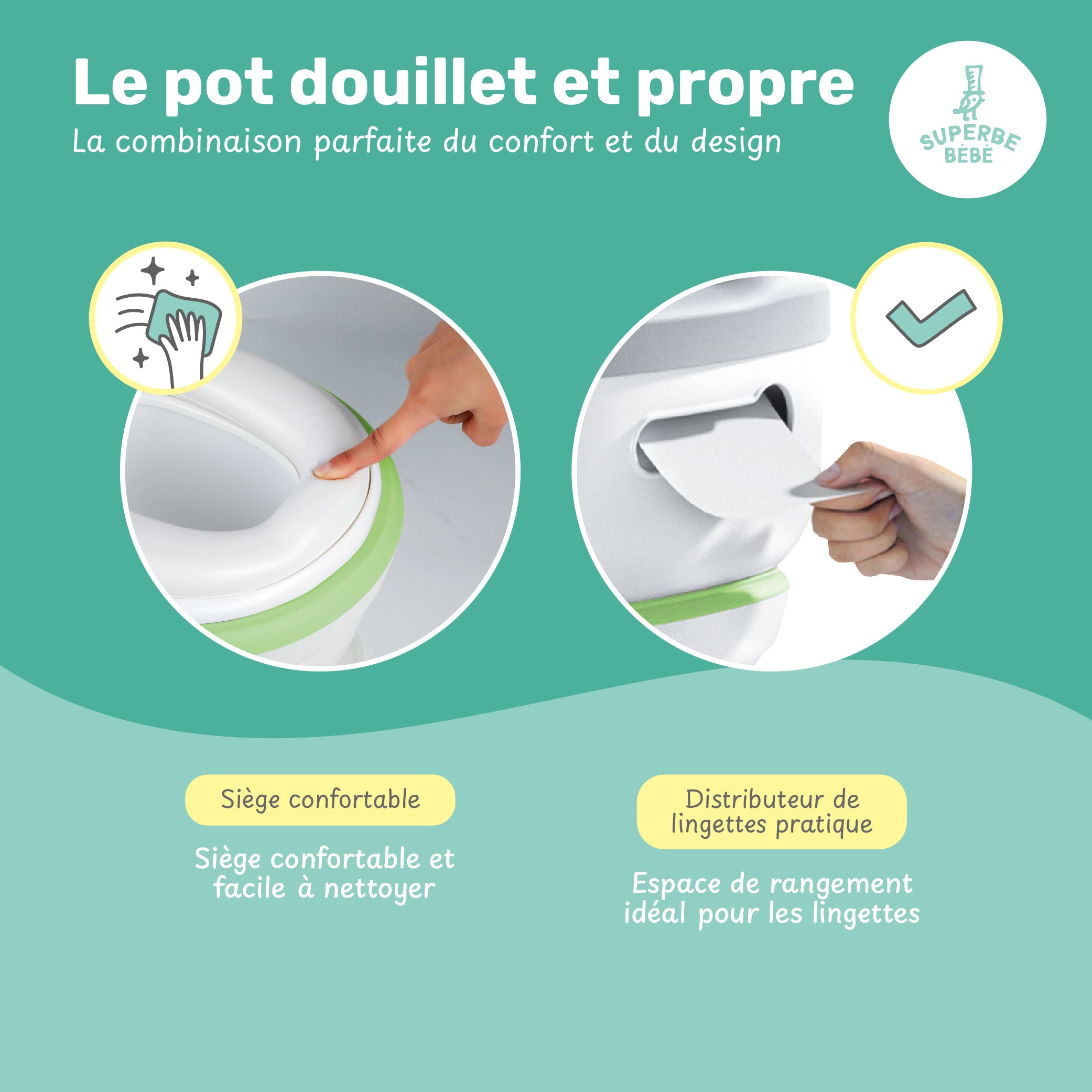 🧽 PRATIQUE : Facile à nettoyer grâce à sa partie amovible. Compartiment à lingette pratique à l'arrière