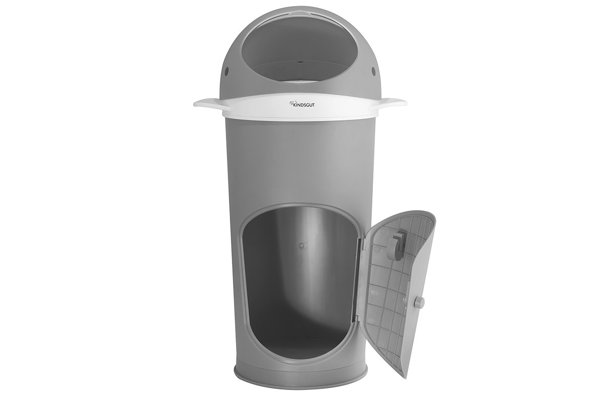 La poubelle à couches Kindsgut au design mignon de baleine complète la "famille des baleines" de Kindsgut et convainc par son design fonctionnel. L'objectif était de repenser entièrement une poubelle à couches. C'est pourquoi la "baleine à couches" de Kindsgut allie désormais plaisir et fonctionnalité - pour les petits et les grands. La poubelle à couches Kindsgut est une poubelle inodore pour les couches et séduit par ses nombreuses fonctions bien pensées. La poubelle à couches est très facile à monter et est stable et antidérapante grâce à un anneau en caoutchouc à la base. Le double clapet assure une fermeture sûre des odeurs, mais en même temps, les deux clapets peuvent être ouverts ou fermés d'une seule main, afin que l'autre main puisse toujours rester auprès de l'enfant. Pour la poubelle à couches, on peut utiliser les films tubulaires biodégradables et indéchirables Kindsgut ou des sacs poubelle traditionnels. Un film tubulaire Kindsgut est inclus gratuitement à l'achat, ce qui permet de jeter environ 300 couches. La découpe du film tubulaire est non seulement facile grâce au cutter intégré, mais permet également d'économiser beaucoup de film malgré l'élimination fréquente des couches. La porte sécurisée s'ouvre et se ferme facilement, de sorte que le cutter n'est pas accessible aux mains des enfants. La poubelle à couches est en plastique, de sorte que toutes les surfaces sont faciles à nettoyer : pour un quotidien hygiénique avec bébé et jeune enfant. La poubelle à couches, tout comme les petits pots et le rehausseur de toilettes, est disponible en huit couleurs unisexes discrètes. Ainsi, la poubelle à couches, le pot et le rehausseur de toilettes peuvent être combinés entre eux et s'intègrent harmonieusement dans les concepts d'habitat modernes. • Fonctionnalité bien pensée: la poubelle à couches convainc par ses nombreuses caractéristiques, comme sa stabilité, son double clapet anti-odeur, son utilisation d'une seule main et l'élimination des sacs, un jeu d'enfant. • Un nettoyage facile: La poubelle à couches est fabriquée en plastique solide, de sorte que toutes les surfaces sont faciles à nettoyer - pour un quotidien hygiénique avec bébé et jeune enfant. • Qualité durable: la poubelle à couches de qualité supérieure peut encore être utilisée par les frères et sœurs. • Matériaux respectueux de l’environnement: dès le début, nous avons misé sur une production respectueuse de l'environnement et sur l'utilisation de matières premières durables. • Dimensions: 37 x 39 x 68 cm