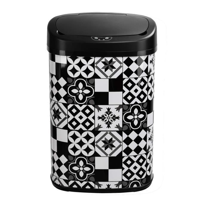 Poubelle automatique 58l inox motif carreau de ciment - bat-58ls06a tile black ss - kitchen move
