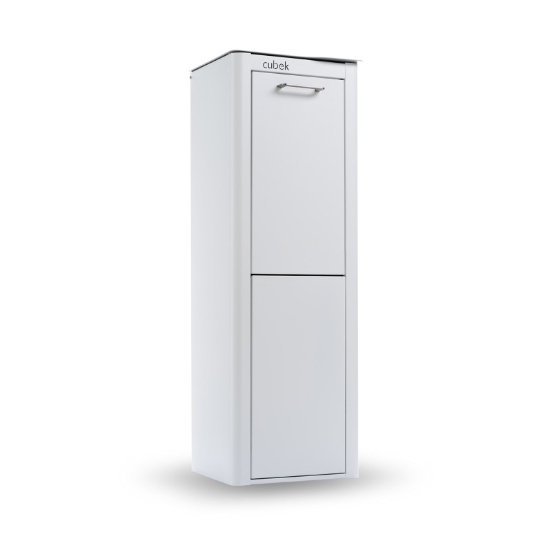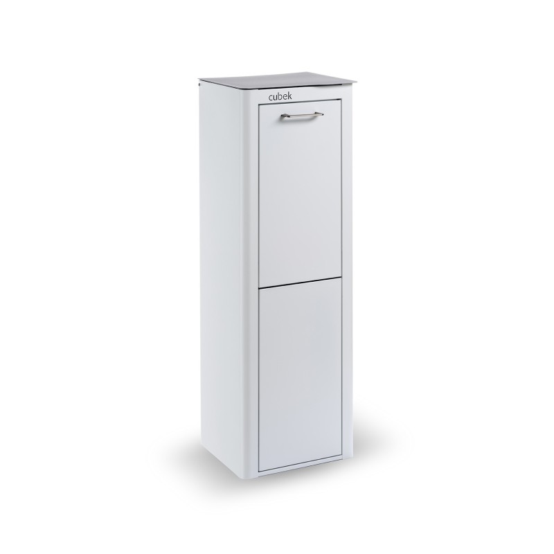 La poubelle de cuisine CUBEK est une poubelle pour le tri sélectif qui allie design, qualité et ergonomie dans son ensemble.La poubelle de cuisine CUBEK dispose de deux bacs de couleurs différentes pour faciliter le tri des déchets et deux compartiments accessibles par le couvercle supérieur : un pour le recyclage des piles usagées et l'autre pour les sacs poubelles. Large gamme de couleurs sont disponibles, vous trouverez sûrement celle qui rend le mieux dans votre cuisine :• Structure blanche et couvercle gris• Structure grise et couvercle gris• Structure noire et couvercle gris• Structure turquoise et couvercle gris• Structure de couleur sable et couvercle gris• Structure vert olive et couvercle blancLa poubelle CUBEK offre un plus en termes de qualité et de design par rapport aux modèles d'autres marquesPrincipales caractéristiques de la poubelle de cuisine CUBEK:Châssis en acier renforcé avec système d'aération breveté qui minimise la condensation et les mauvaises odeurs.Couvercle supérieur silencieux pour un meilleur accès au bac supérieur, qui est le plus utilisé.Elle dispose de deux supports dans sa partie supérieure : un pour le stockage des piles usagées et un autre pour le stockage du rouleau de sacs poubelles. Avec la poubelle CUBEK, plus besoin d'aller chercher dans l'armoire le rouleau de sacs. Vous pouvez regrouper tous vos déchets et accéssoires dans un seul meuble.Poignée avec une conception anatomique qui facilite son ouverture.Elle contient 2 seaux amovibles intérieurs de différentes couleurs avec poignées, ce qui facilite le tri des déchets et le nettoyage de la poubelle. Chaque compartiment a 20 litres de capacité.Bords arrondis pour une plus grande ergonomie du meuble, améliorant notamment son esthétique.Possibilité de l'accrocher au mur. Livrée avec un jeu de vis.Ergonomie dans le recyclage des déchets et des ordures ménagères.Toutes ces innovations facilitent le recyclage à la maison et au bureau, tout en gardant à l'esprit que le design du CUBEK est exclusif et s'intègre parfaitement à tout style de cuisine. C'est un meuble à montrer, pas à cacher.CUBEK, la solution définitive pour le recyclage domestique et professionnel dans les bureaux.Nettoyage facile. Utilisez un chiffon humide. N'utilisez pas de produits de nettoyage chimiques.Refusez les imitations. Nos meubles sont faits pour durer. Plus de 35 ans d'expérience dans la fabrication de meubles auxiliares pour la maison nous avalent.Fabrication espagnole avec des matières premières 100% recyclables et de l'énergie provenant de sources renouvelables.Dimensions: 98,5 ( Hauteur ) 33,6 (Largeur ) 29,5 ( Profondeur ) cm.Brevet: 2945568-001