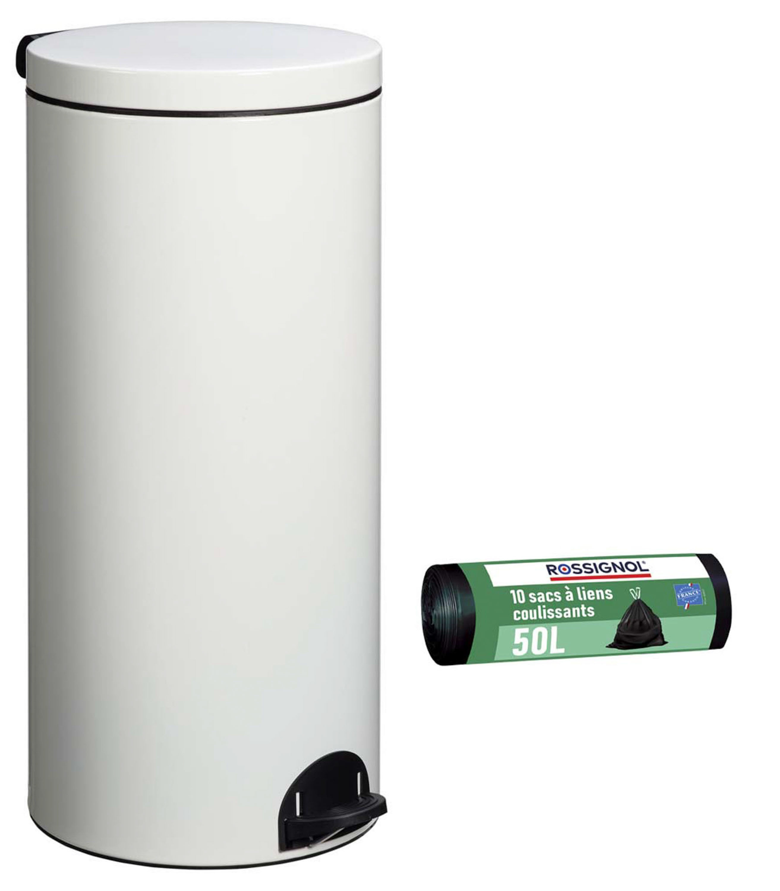 | Libellé | Poubelle de cuisine à pédale 30L et 10 sacs poubelle 50L - ELORA ROSSIGNOL |