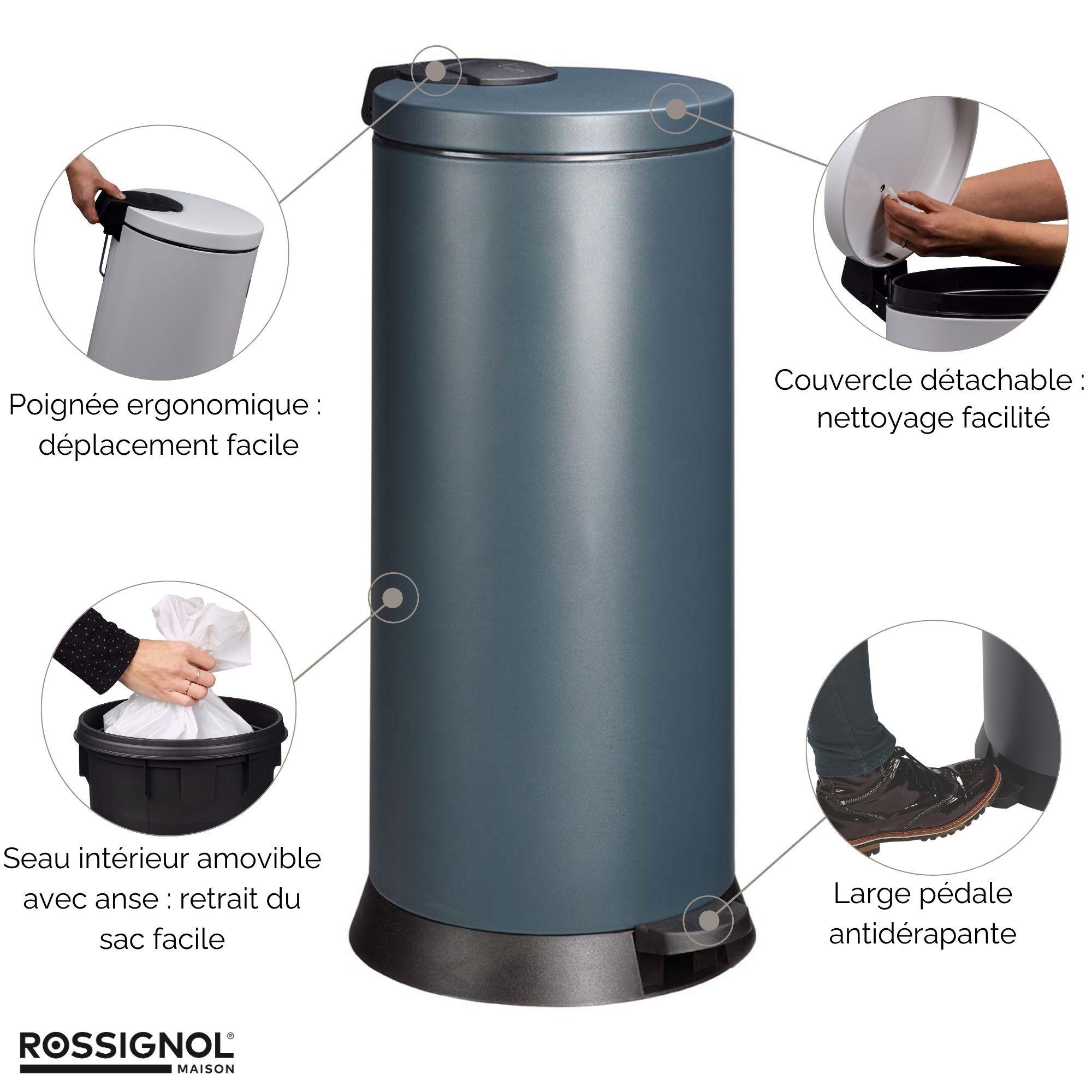 Libellé Poubelle de cuisine à pédale 30L Fabriqué en France - MAGIC ROSSIGNOL