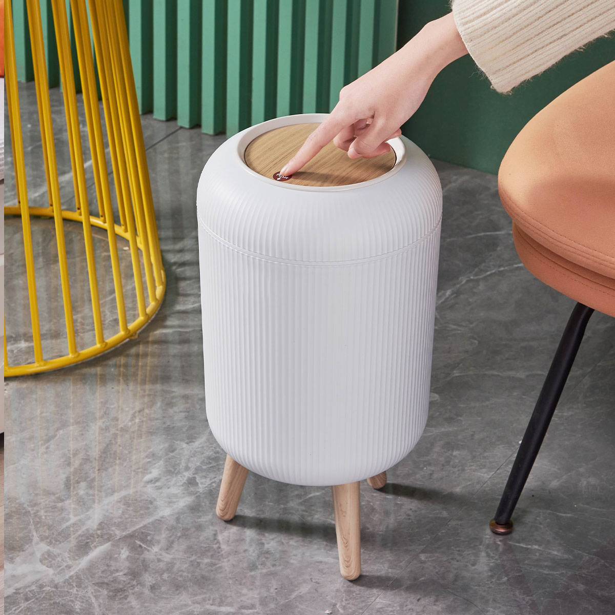 Style nordique scandinave. Design épuré et moderne. Une poubelle chic au design moderne et élégant.