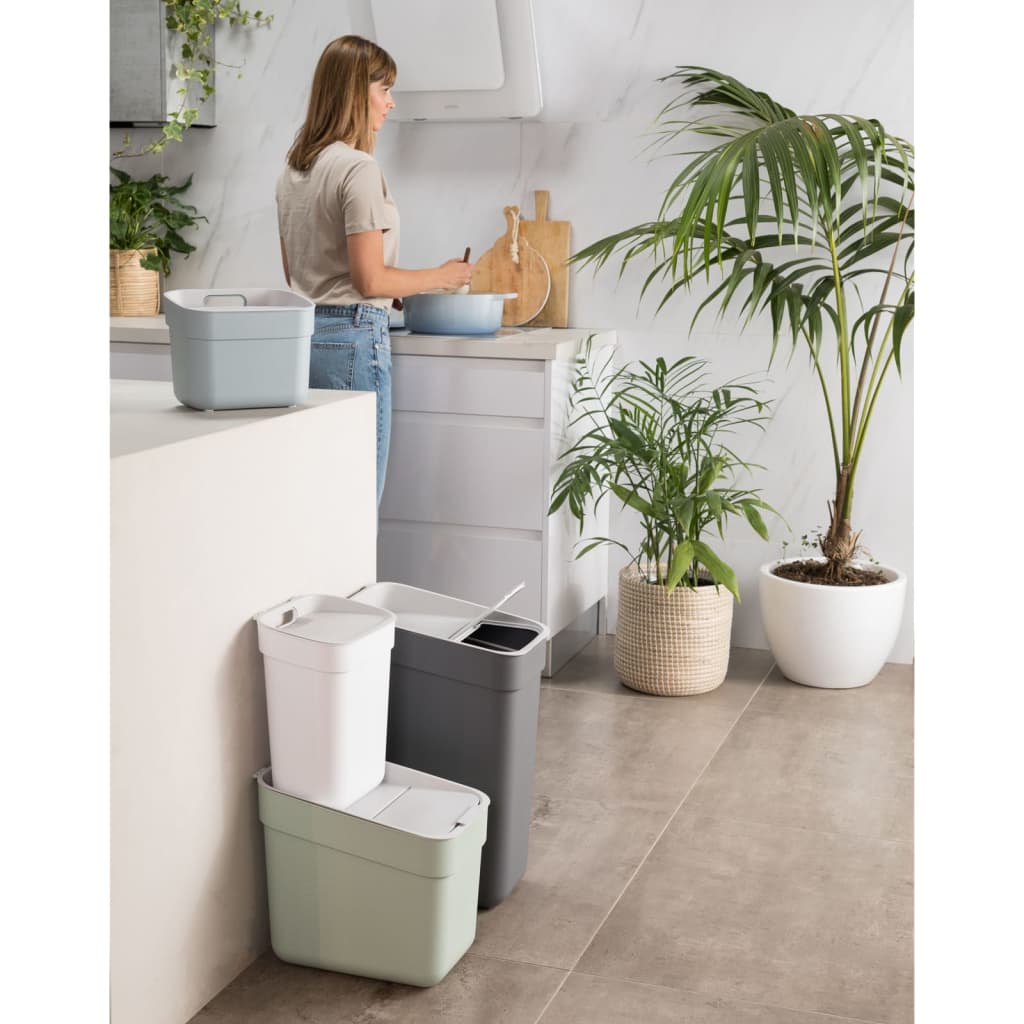 Ready to Collect est la solution idéale de tri des déchets pour votre maison ! Modulaire et très fonctionnelle, la gamme Ready to Collect se décline dans une palette de couleurs recyclées fraîches et modernes qui s'adaptera à n'importe quelle cuisine, buanderie ou garage. Disponible en différentes tailles : du composteur de déchets organiques de cuisine de 5L à la poubelle de 1L, 2L ou même 3L; la collecte des emballages vides, des bouteilles ou des canettes n'a jamais été aussi facile. Vous voulez gagner de la place ? Toutes les tailles peuvent être empilées les unes sur les autres, avec un accès facile par l'avant pour les 2L et 3L. Elles peuvent même être accrochées à un mur, ou à un placard grâce au support mural en option. Pour soulever, transporter et vider la poubelle, une grande poignée arrière et une poignée inférieure facilitent l'utilisation quotidienne.