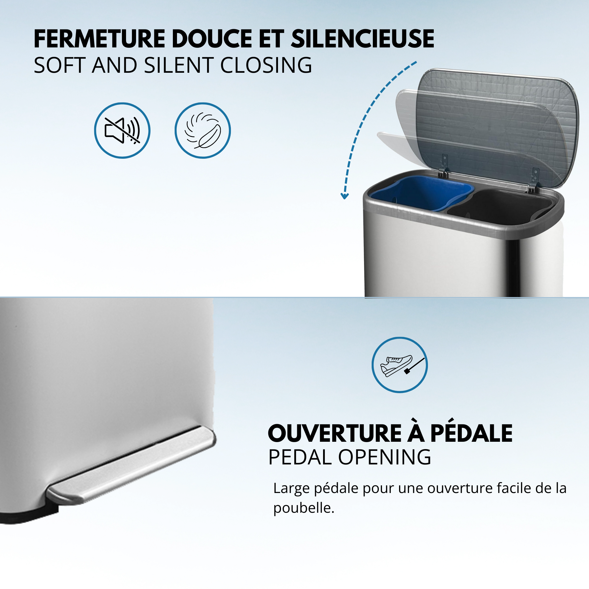 - Poubelle de cuisine à pédale tri sélectif rectangulaire.