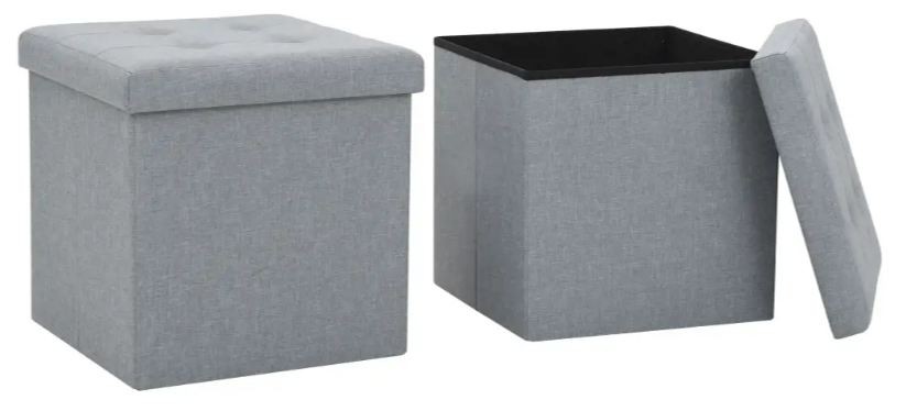 Ce magnifique lot de 2 poufs de rangement sont fabriqués en bois massif MDF avec un revêtement en faux lin et un rembourrage en mousse. A la fois confortable et stable, c'est l’accessoire idéal pour votre intérieur. Il peut-être utilisé comme siège supplémentaire dans votre maison et son caractéristique amovible et son espace de rangement révèlent son côté très pratique. Sa couleur grise clair apporte une touche de modernité et une ambiance chaleureuse à votre espace. Cet article est également disponible en d'autres coloris et d'autres modèles. Il est aussi vendu par 1 ou 2. Dimensions : L 38 x H 38 x P 38 cm Matériau : revêtement faux lin, rembourrage mousse, structure MDF Couleur : gris clair Siège rembourré confortable Dessus de siège amovible Conception à boutons Facile à nettoyer et à assembler Pliable La livraison comprend 2 poufs de rangement