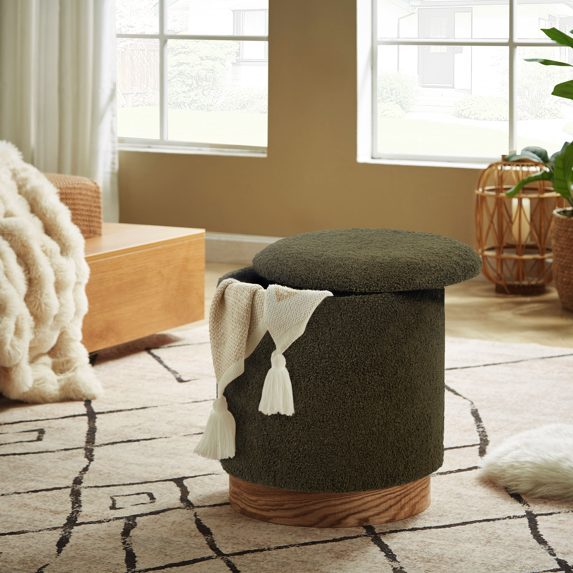 | Libellé | Pouf coffre JULIETTE tissu bouclette kaki |