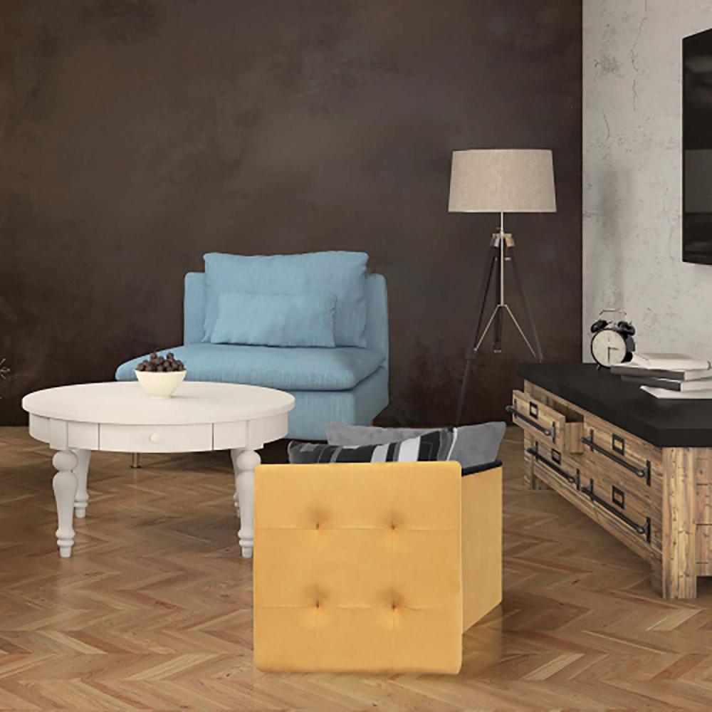 | Libellé | Pouf coffre pliable en suédine assise capitonnée jaune |