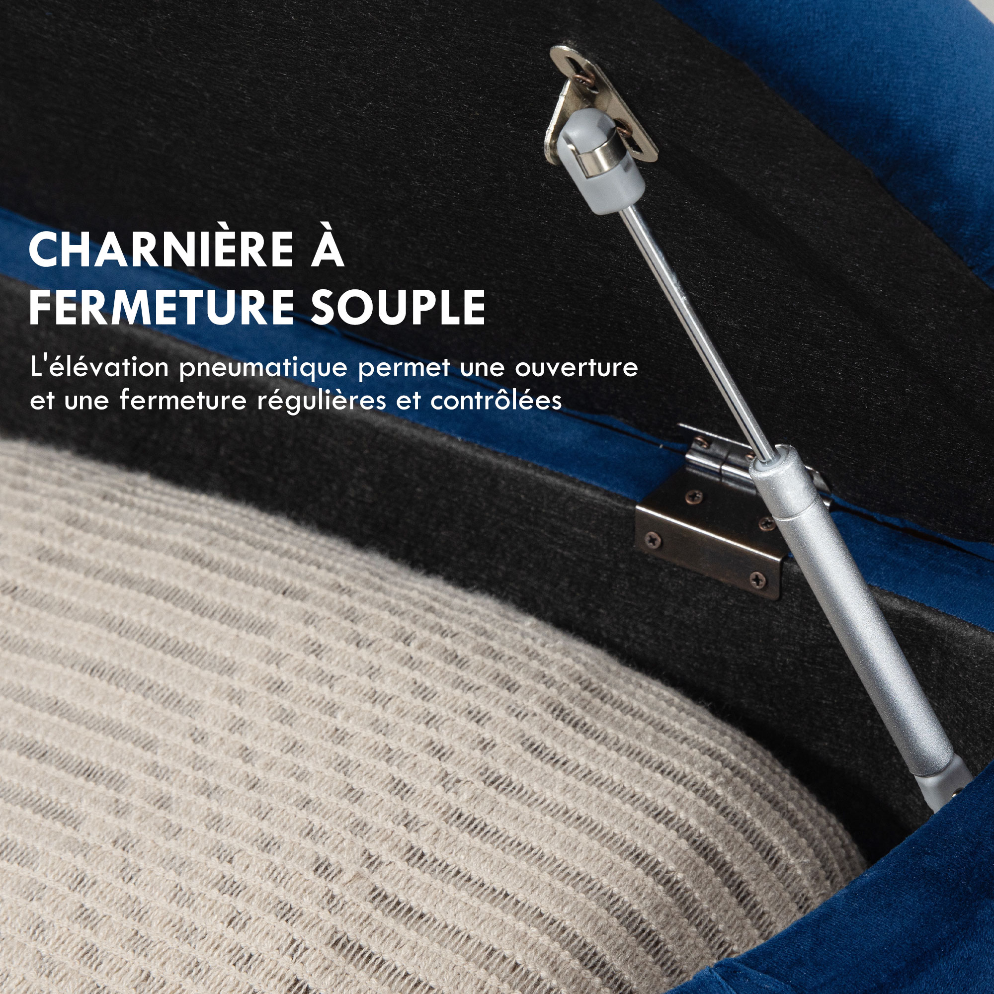 Libellé Pouf de rangement coffre 2 en 1 - pouf design classique chic capitonné demi-cercle - pieds bois hévéa noir revêtement velours bleu roi