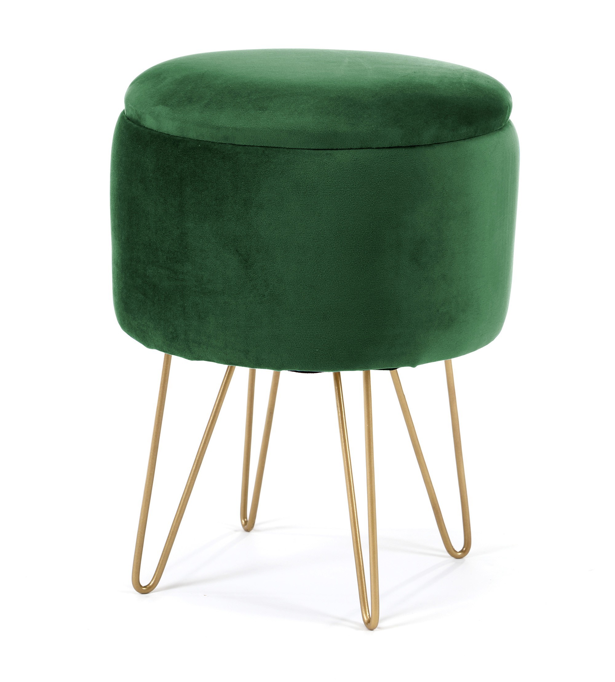 Un repose-pieds ou un pouf est un excellent ajout au salon ou à la chambre. C'est grâce à lui que les jambes fatiguées peuvent se reposer après toute une journée de marche, et lorsque le pouf est en velours doux, il ne fait que renforcer les agréables sensations de repos. Un look moderne signifie des accessoires, dans notre pouf, nous avons utilisé des pieds en métal peints en couleur dorée, ce qui est tellement à la mode cette année. Le couvercle ouvrable donne accès au conteneur dans lequel nous mettons les objets inutiles au quotidien.