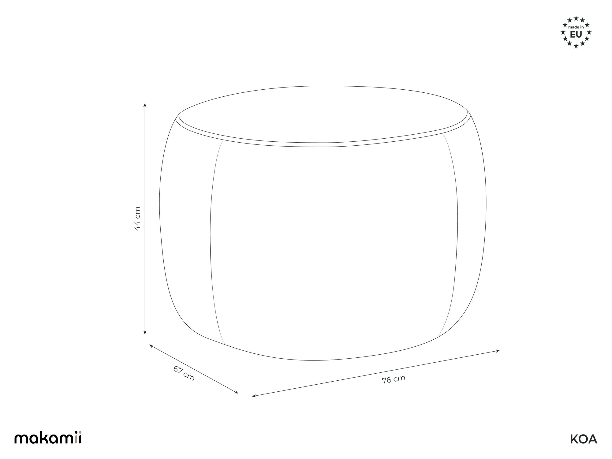 Le Koa Pouf est un objet polyvalent et élégant qui rehaussera n'importe quel intérieur. Avec des dimensions compactes de 76x67x44 cm, il offre un espace d'assise généreux et convient parfaitement comme siège supplémentaire ou comme repose-pieds élégant. Son luxueux tissu en velours offre un toucher exceptionnellement doux et un look sophistiqué qui donne à n'importe quelle pièce une touche élégante. La surface du tissu velours est caractérisée par un revêtement innovant bloqué par l'eau. Les liquides ne pénètrent pas immédiatement, mais restent en surface sous forme de gouttes, ce qui rend le nettoyage particulièrement facile. Cette fonction rend le pouf particulièrement adapté à un usage quotidien et idéal pour les ménages occupés. Le tissu est non seulement visuellement attrayant, mais aussi pratique et durable. Avec une résistance à l'abrasion Martindale de 100 000 cycles et une résistance élevée au boulochage (4-5), le tissu reste impeccable même en cas d'utilisation intensive. De plus, le velours possède une propriété ignifuge qui assure une sécurité supplémentaire, ainsi que des certifications telles que Oekotex et R.E.A.C.H., qui confirment le caractère écologique et familial du matériau. Le rembourrage en mousse de polyuréthane (30 kg/m³), qui offre une agréable stabilité d'assise et une bonne tenue de forme, assure un confort optimal. Le cadre en panneaux de particules, contreplaqué et sangles de rembourrage assure la stabilité et supporte jusqu'à 150 kg. Les pieds en plastique noir de 3 cm de haut soulignent le design moderne et offrent une stabilité sûre. Facile d'entretien et durable : le tissu velours peut être facilement rafraîchi avec un nettoyeur vapeur, tandis que les taches légères peuvent être facilement éliminées avec un chiffon doux. Le Koa Pouf combine un look luxueux, une fonctionnalité moderne et une utilisation quotidienne – un meuble polyvalent qui offre confort et style dans n'importe quel espace de vie.