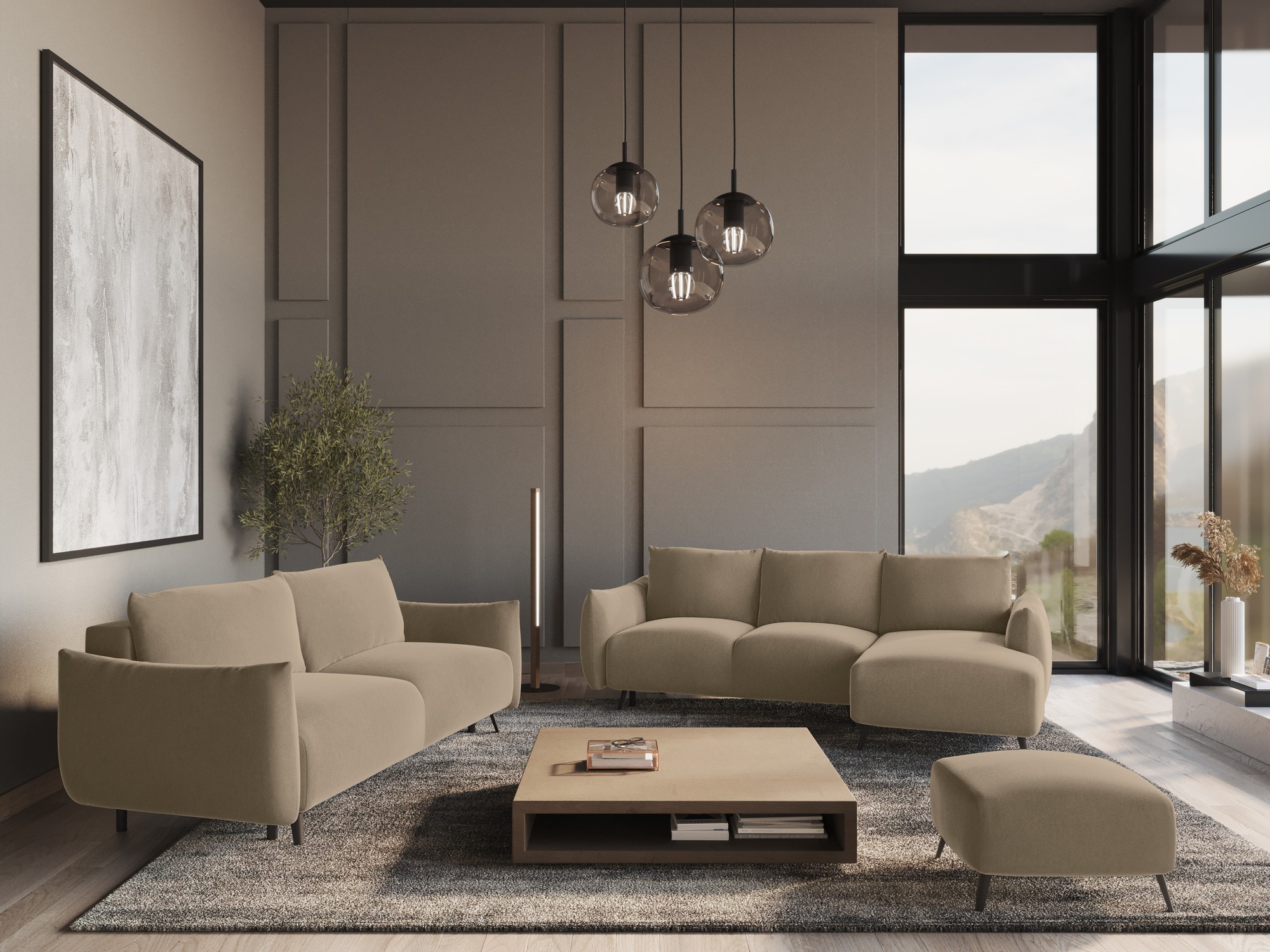 Le pouf Malie est un ajout raffiné à votre espace, avec des dimensions de 65 x 65 x 44 cm, idéal pour une assise supplémentaire ou pour ajouter une touche de luxe à votre salon ou chambre. Le revêtement en velours de haute qualité se distingue par son toucher soyeux et son allure luxueuse, offrant une variété de couleurs éclatantes pour sublimer votre espace. Grâce à sa composition 100 % polyester, ce tissu est exceptionnellement résistant à l'usure et aux taches, confirmant sa durabilité avec un test Martindale de 100 000 cycles. Sa structure en bois de pin et en panneaux de particules assure un maintien solide et léger, pour une pièce conçue pour durer. Doté d’une mousse en polyuréthane haute densité de 30 kg/m³, le pouf Malie assure un confort optimal tout en préservant sa forme dans le temps. Les pieds en métal noir de 15 cm de hauteur ajoutent une touche moderne et stable à l'ensemble, tandis que ses ressorts ondulés garantissent une assise à la fois ferme et accueillante. Ce pouf incarne le luxe et le confort, s'intégrant harmonieusement dans divers styles d'intérieurs, que ce soit pour un salon contemporain ou un coin de détente élégant.