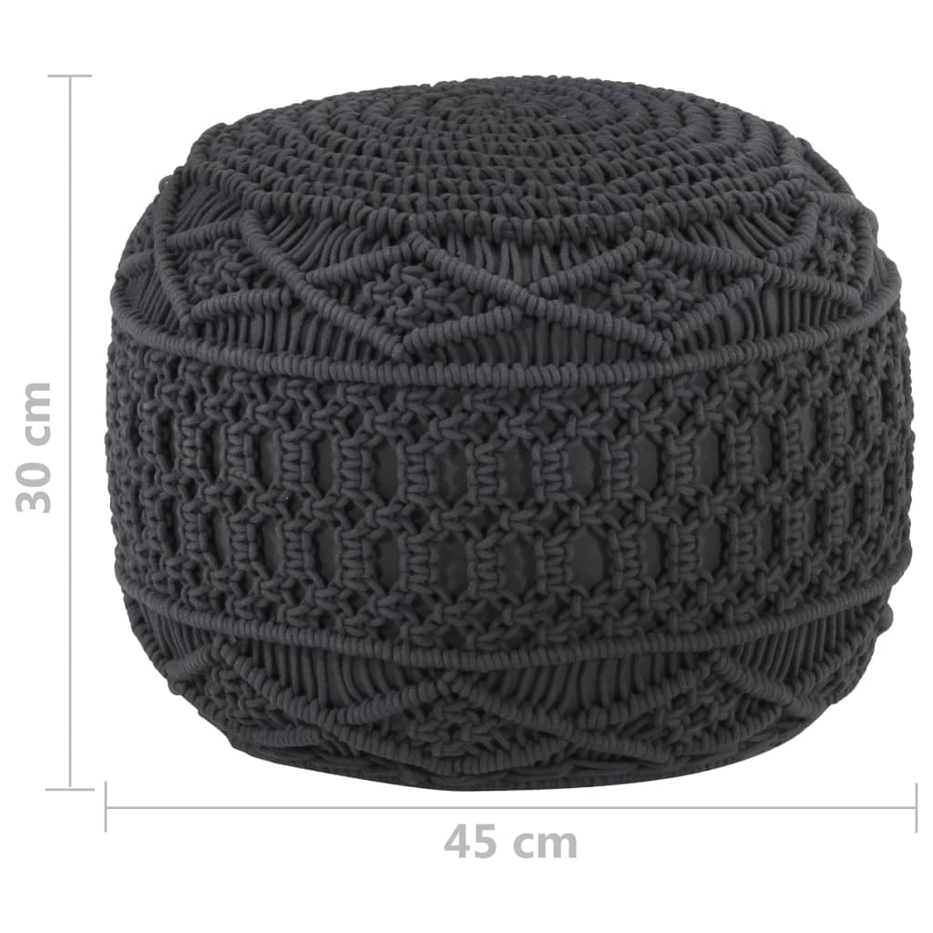 Pouf fait à la main en macramé Anthracite 45x30 cm Coton