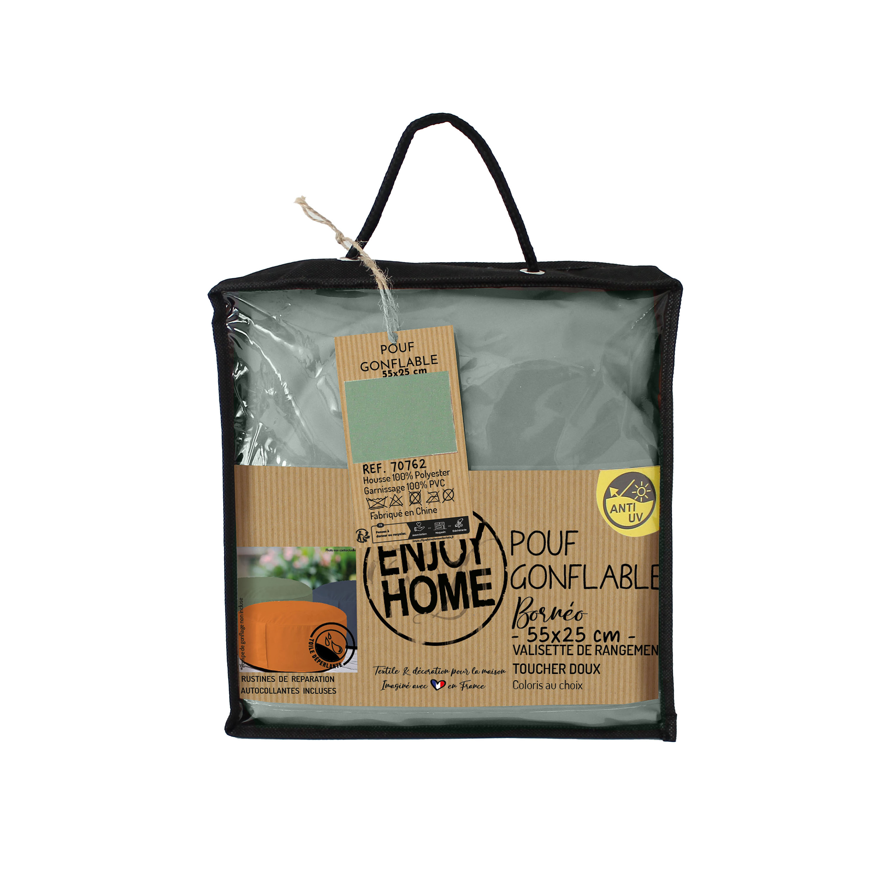 | Libellé | Pouf Gonflable Rond, 55 x 55cm, Vert Argile, Collection Borneo, ENJOY HOME |