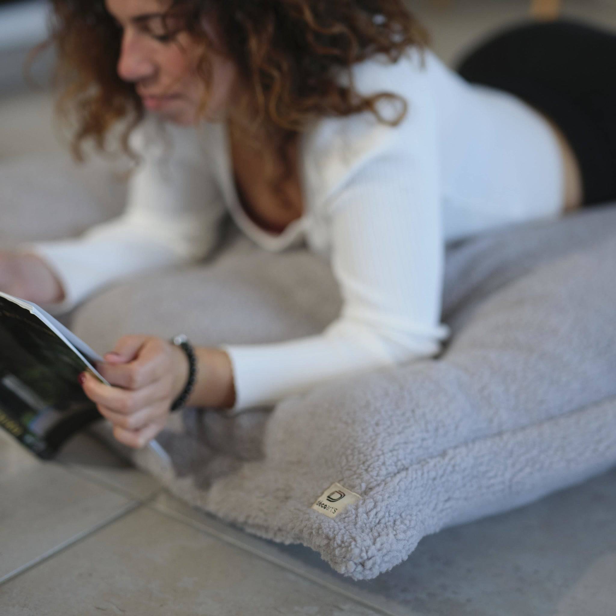 Déco Arts Pouf Intérieur - Pouf déhoussable Ultra Confort - Housse Sherpa (Effet Mouton), Doublure Polyester & garnissage en mousse de Polyuréthane - 150x100cm, 4.9kg