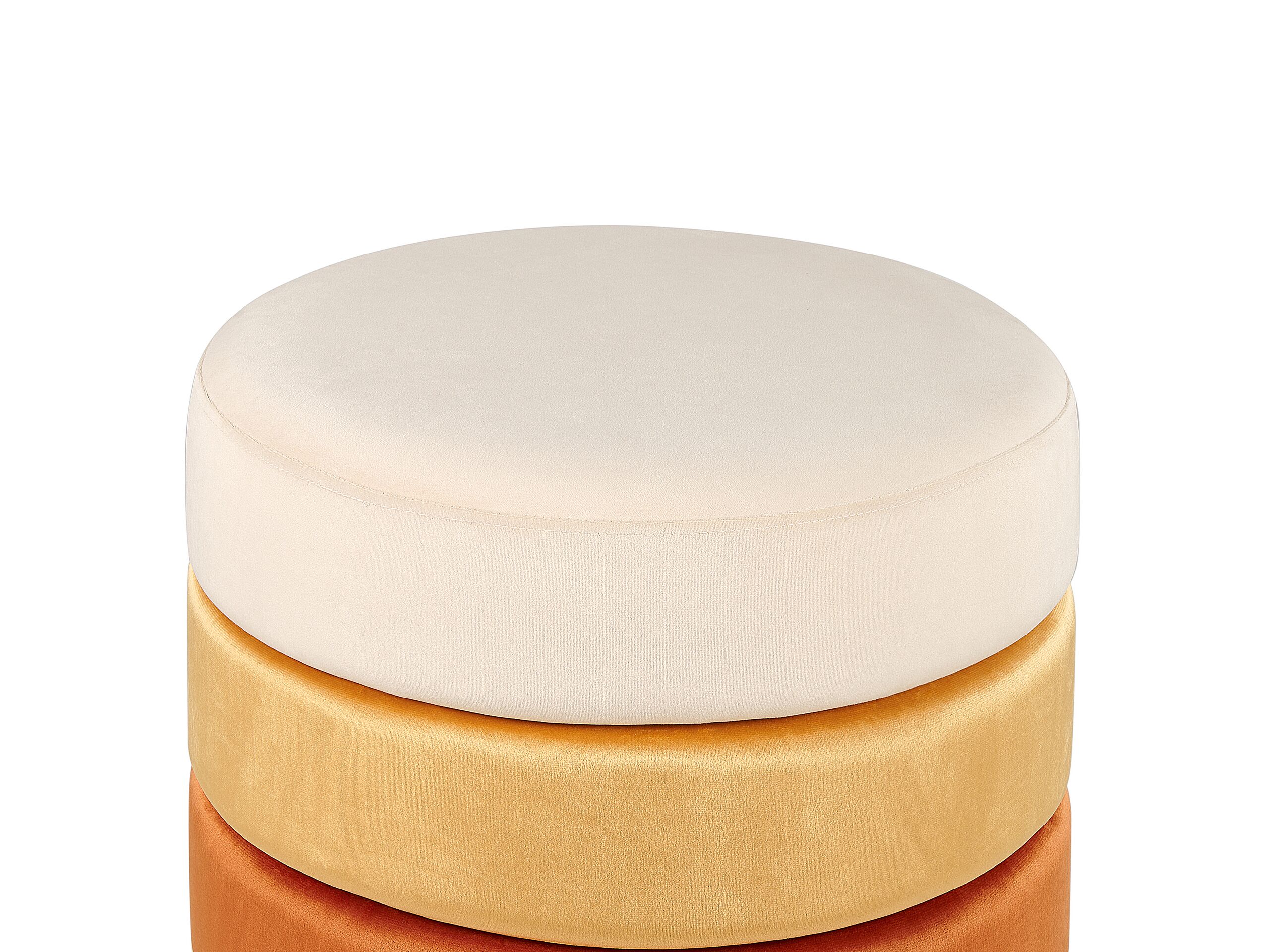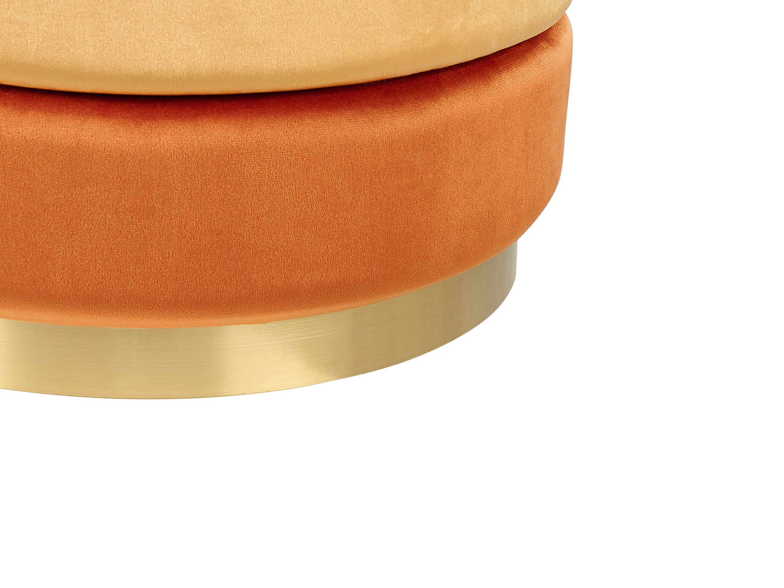 Repose-pieds glamour. Restez captivé par l'esthétique glamour de ce pouf moderne. Drapé dans un somptueux tissu de velours qui passe gracieusement d'un dégradé de couleurs à l'autre, ce produit est un plaisir visuel. Sa base en métal doré ajoute une touche de luxe, rehaussant sans effort votre décor. Avec son design unique et son confort moelleux, ce pouf promet d'être la pièce maîtresse dans n'importe quelle pièce.