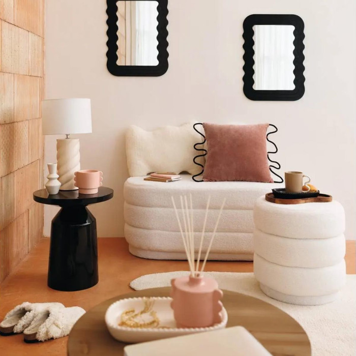 Ce pouf Sinan moumoute blanc de la marque Atmosphera apportera confort et élégance à votre intérieur. N'hésitez pas à utiliser ce pouf comme repose-pieds et appréciez vos soirées bien confortablement installé dans votre canapé. Dernière tendance déco, le tissu moumoute blanc sera la touche style de votre pièce. Tissu non déhoussable. Dimensions : D40 x H40cm. Poids : 3,86 kg. Matière de la structure : MDF - fibres de bois. Matière du rembourrage : Mousse Polyuréthane PU. Matière du tissu : Polyester.