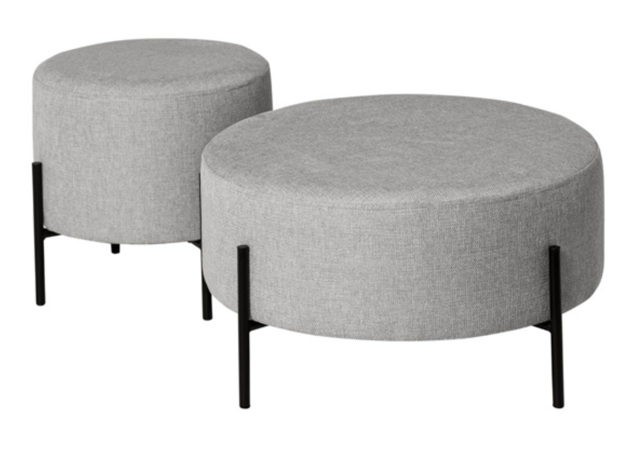 Pouf rond moderne en tissu avec pieds en métal noir Kamila-Couleur Gris clair-Diamètre 40 cm