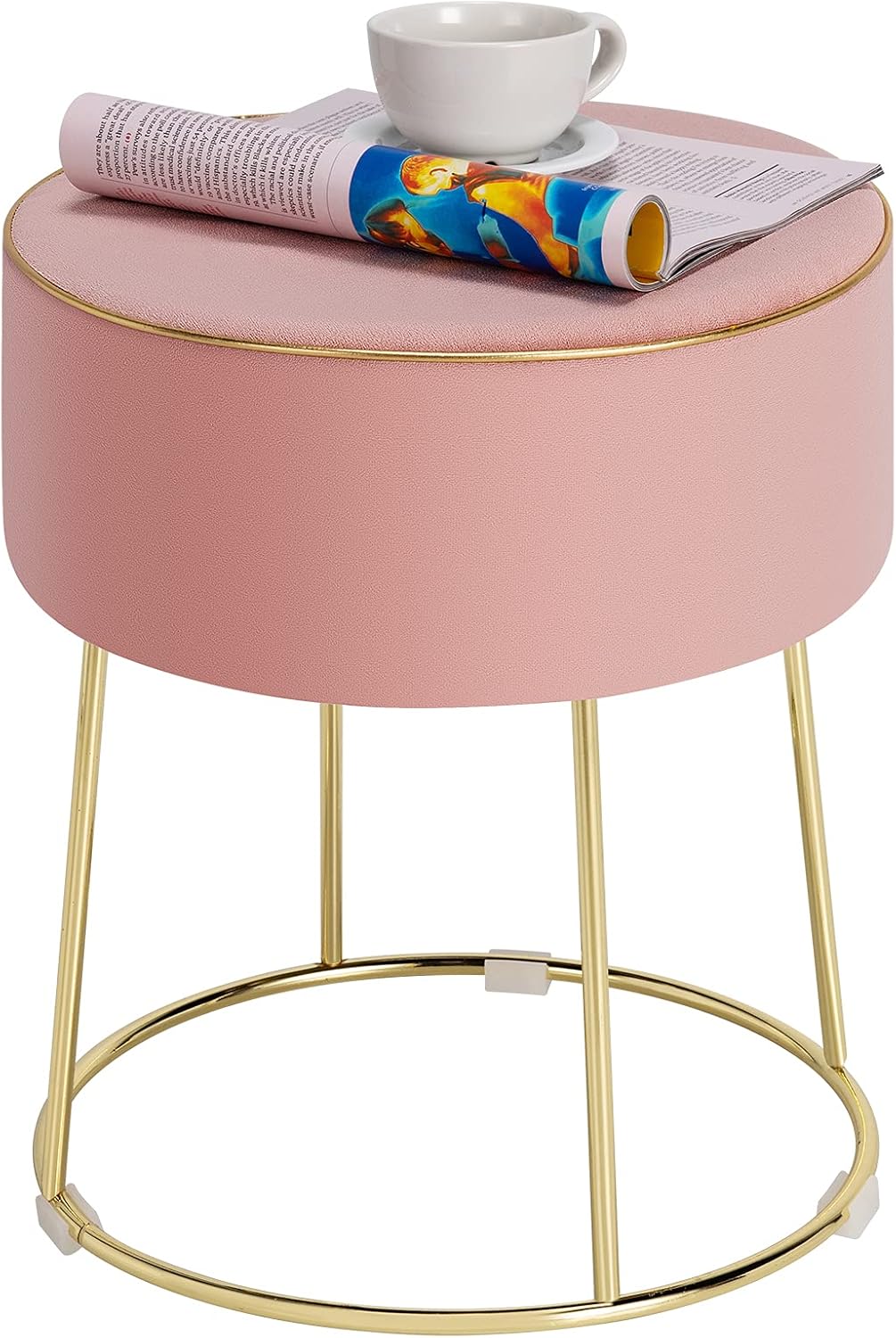 Pouf rond rembourré tabouret de coiffeuse avec base en métal stable patins antidérapants,repose-pied rose