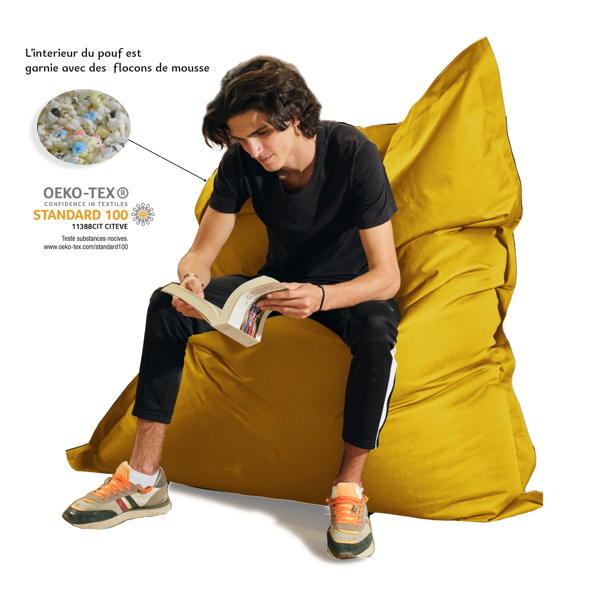 | Libellé | Pouf XXL intérieur extérieur déhoussable en tissu jaune 140x180cm |