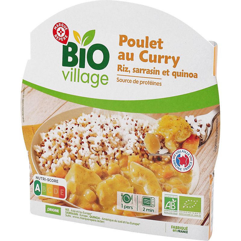 Poulet au curry avec riz, quinoa et sarrasin Bio - 300G - BIO VILLAGE