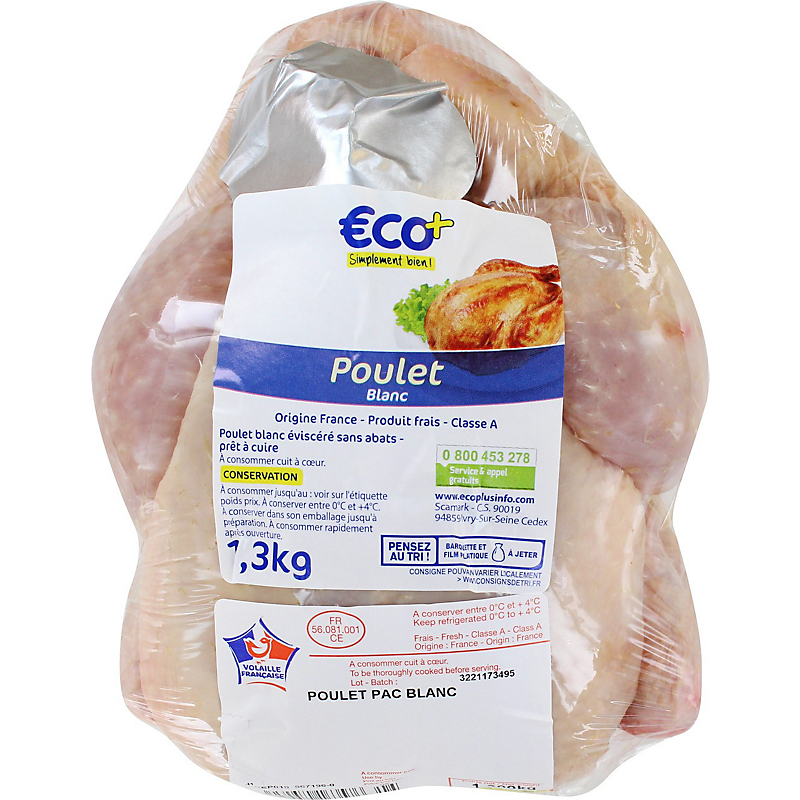 POULET BLANC EVISCERE SANS ABATS - PRET A CUIRE ECO +