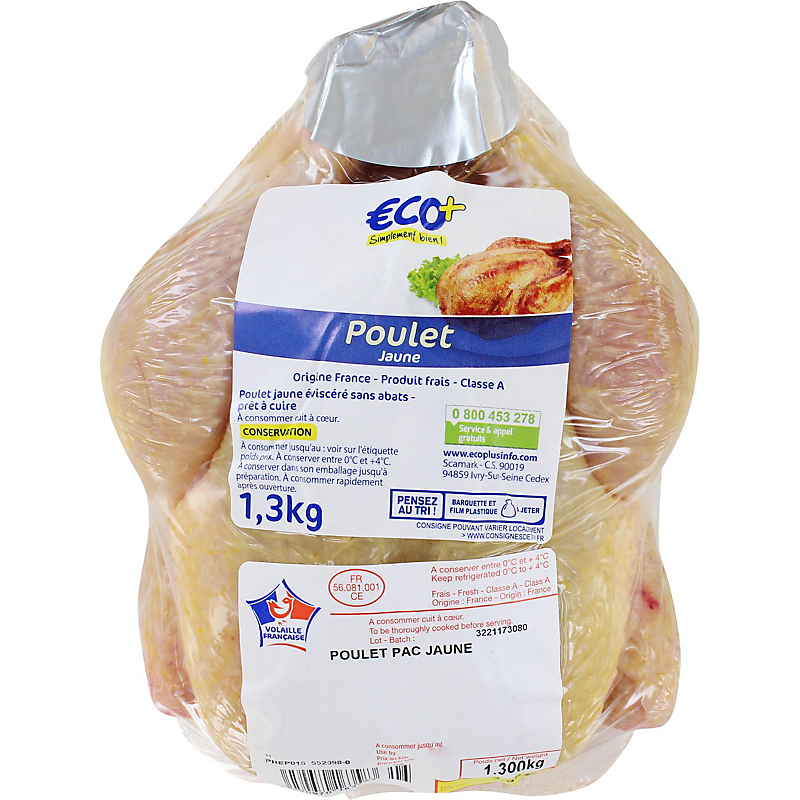 POULET JAUNE EVISCERE SANS ABATS - PRET A CUIRE ECO +