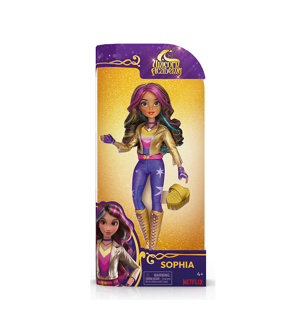 Retrouvez l'univers magique et féérique de la série animée L'Ecole des Licornes. Une poupée mannequin Sophia 24 cm issue de la série animée L'Ecole des Licornes. Retrouve ton héroïne préférée dans sa tenue avec chevelure à coiffer et accessoires dont une brosse et des vêtements amovibles. Poupée comprenant 9 points d'articulation. Boîte fenêtre. A partir de 4 ans.
