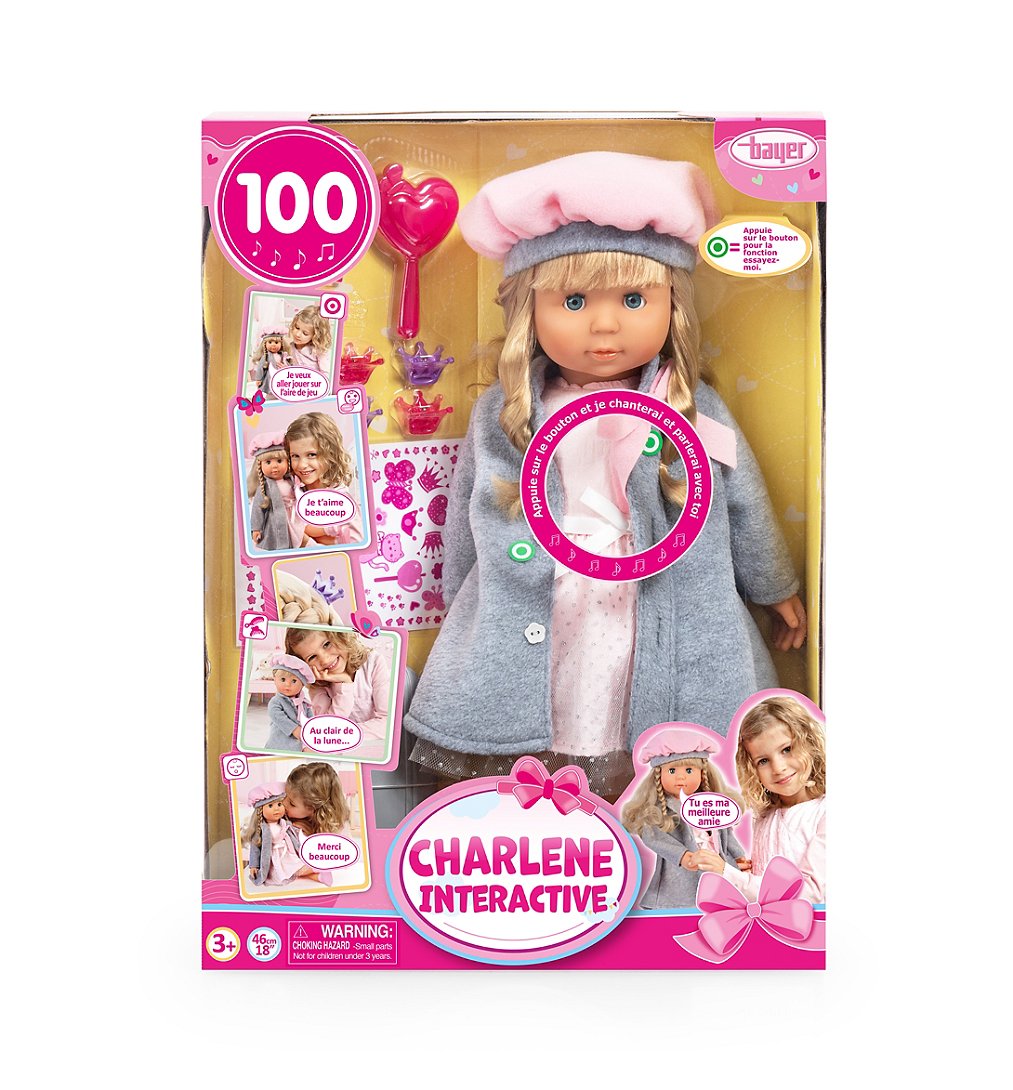 Poupée interactive de 46 cm env. Effets sonores. Accessoires fournis.