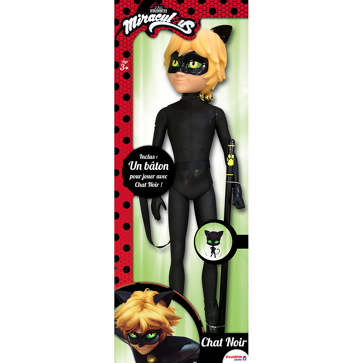 Plus vraie que nature, la poupée Chat Noir mesure 57 cm de haut. Elle est habillée dune sublime combinaison noire et de son bâton accroché autour de la taille. Fais appel à ton imagination pour revivre les aventures de Chat Noir, et sauver la ville de Paris !
