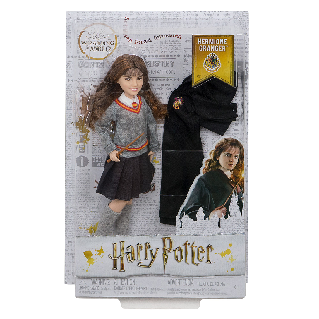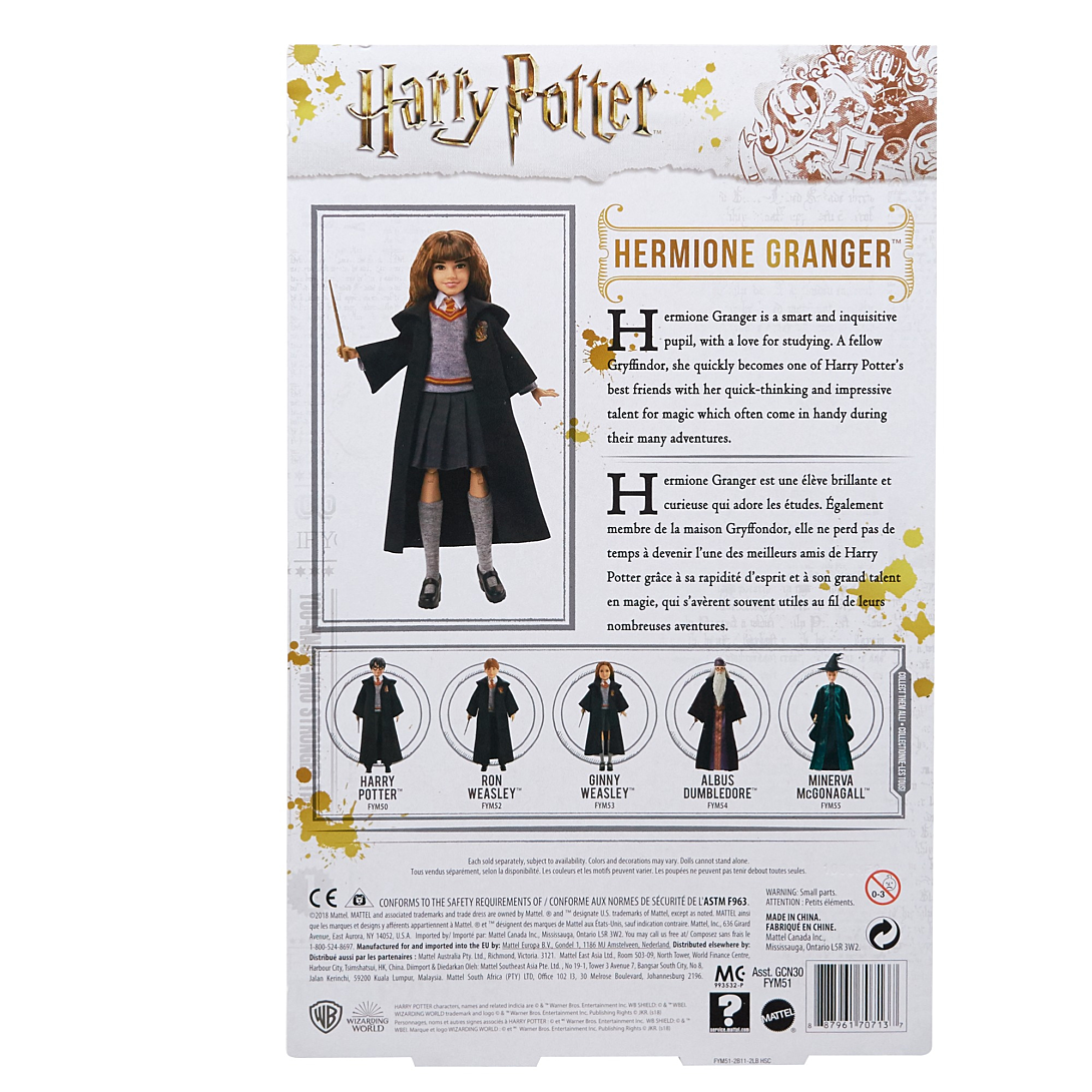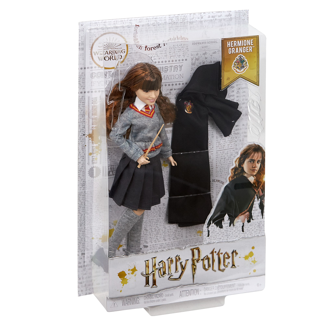 | Plus produit | Les fans et les collectionneurs adoreront rejouer leurs passages préférés et imaginer leurs propres scénarios !\nLa poupée Hermione porte luniforme de Poudlard, une robe de sorcière Gryffondor et une baguette, que les fans peuvent utiliser pour aider la jeune sorcière à lancer des sortilèges.\nDes détails spécifiques, tels que le blason Gryffondor sur sa robe, font de la poupée Hermione une fidèle reproduction de lhéroïne de la célèbre saga Harry Potter.\nLes onze « articulations » de la poupée offrent des possibilités infinies de positions pour imaginer des scénarios enflammés dans lesquels Hermione aide Harry à vaincre Lord Voldemort.\nHarry Potter : jamais sans ses amis ! Les jeunes fans peuvent collectionner leurs personnages préférés pour samuser encore plus et multiplier les possibilités de jeu. |