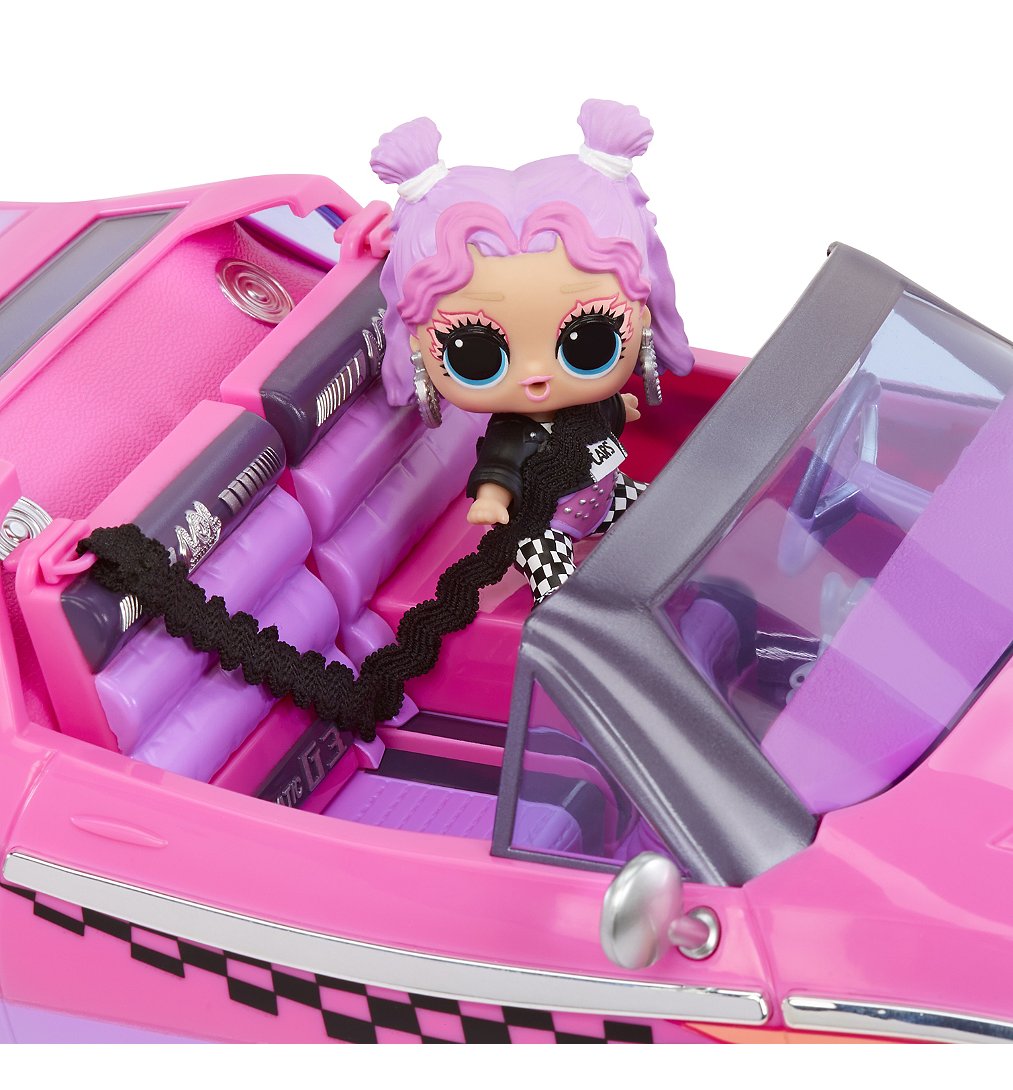 Voici le tout nouveau L.O.L. Surprise City Cruiser™ ! Cette voiture de sport comprend des sièges qui conviennent aux OMG et aux Tweens mais également un siège d'appoint pour que les poupées LOL prennent le volant et se lancent dans leur propre aventure !