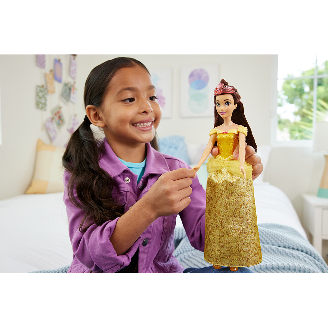 | Plus produit | Inspirée du personnage principal du célèbre film Disney La Belle et la Bête, cette poupée Belle est prête à saventurer au-delà de son village !\nCette poupée articulée arbore le look emblématique du personnage dans le film et porte notamment un diadème et des chaussures amovibles.\nSa tenue se compose dun haut brillant et dune jupe amovible avec un motif propre à lunivers du film.\nLes enfants peuvent même samuser à coiffer les longs cheveux de la poupée !\nUne excellente idée de cadeau pour les enfants qui veulent recréer les meilleurs moments du film ou imaginer leurs propres aventures !\nLes fans peuvent collectionner toutes les poupées Princesses Disney pour des aventures encore plus magiques ! Articles vendus séparément. Certains produits peuvent ne pas être commercialisés. |
